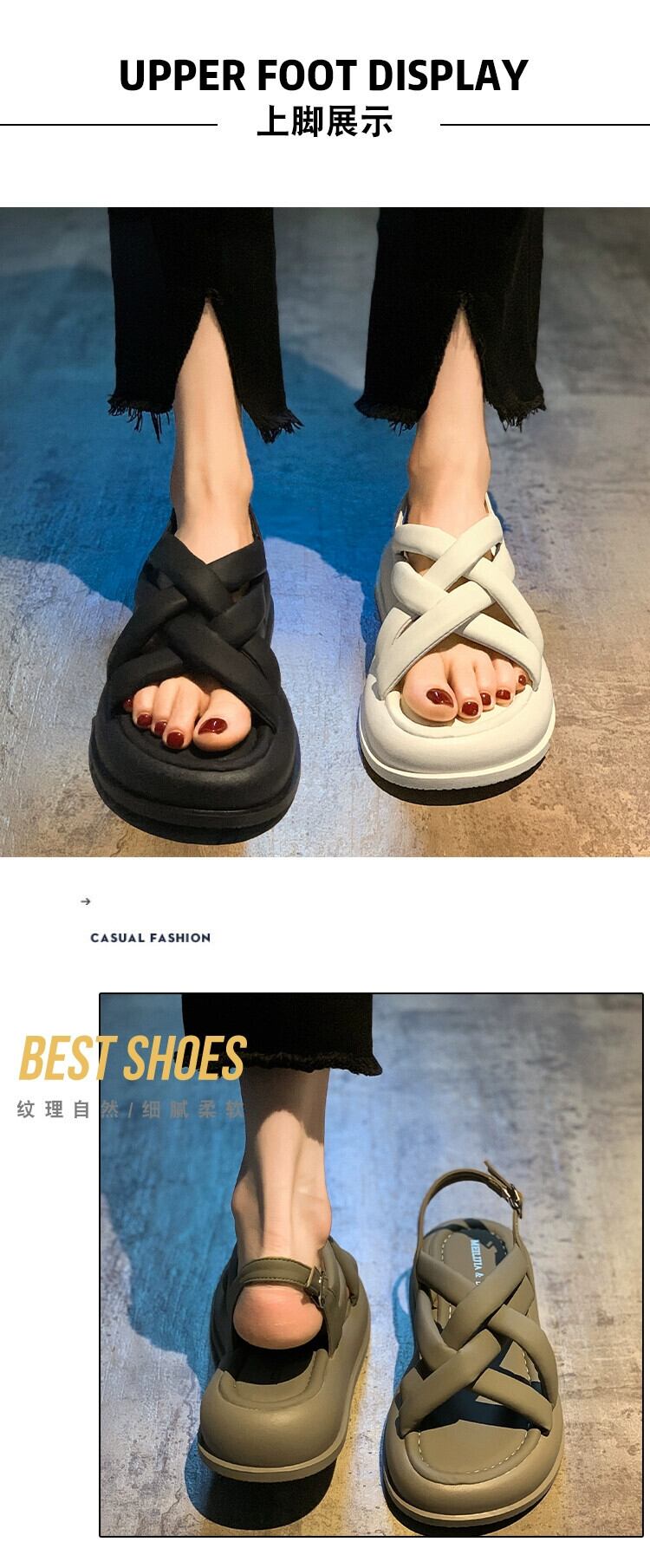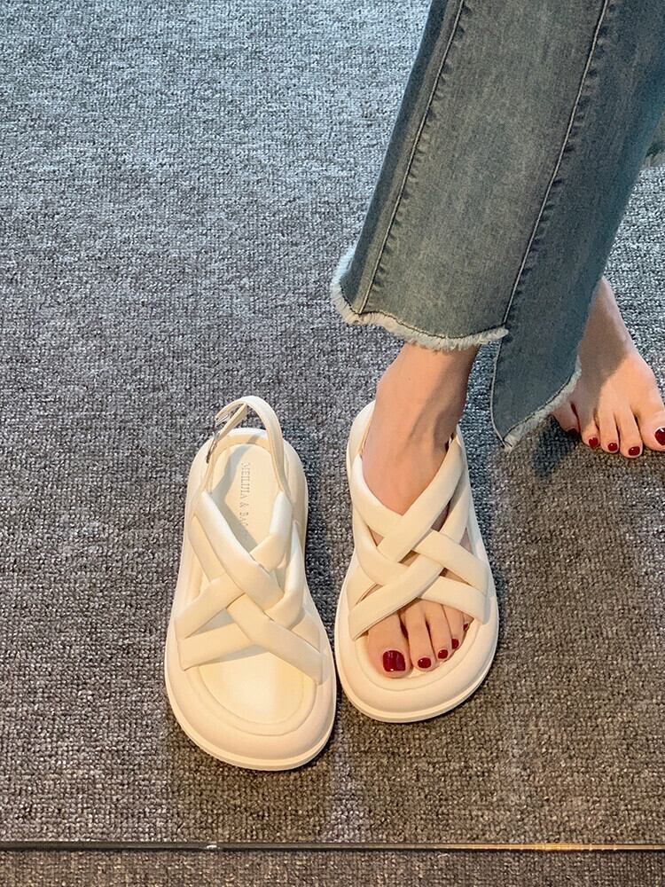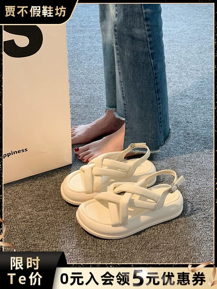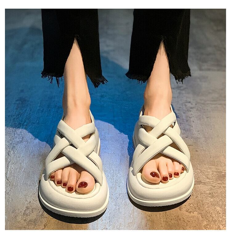 Jiabu 偽の女性のローマの靴の女性の 2023 夏の新ファッション eign スタイル中空厚底カジュアルビーチサンダル シューズ サマー 夏物 jxjxf99248231964