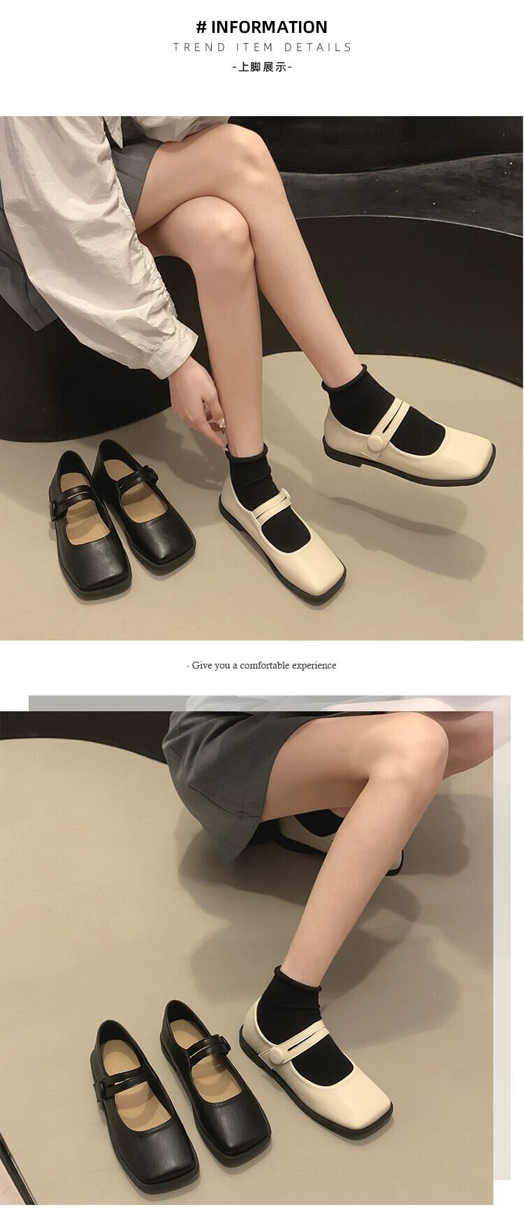 スタイルシングルシューズ女性の 2023 夏の新ファッションレトロオールマッチフラットノンスリップ eign スタイルスクエアトゥメリージェーンシューズ 靴 サマー 夏物 スクウェア jxjxf70884069758