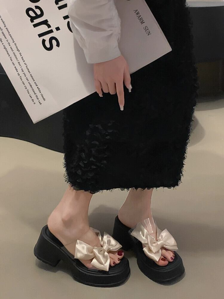 Jiabu 偽スリッパ女性のアウターウェア 2023 夏の新ファッション eign スタイル弓厚底 comtable サンダルとスリッパ リボン ミュール 靴 シューズ サマー 夏物 jxjxf56445175855
