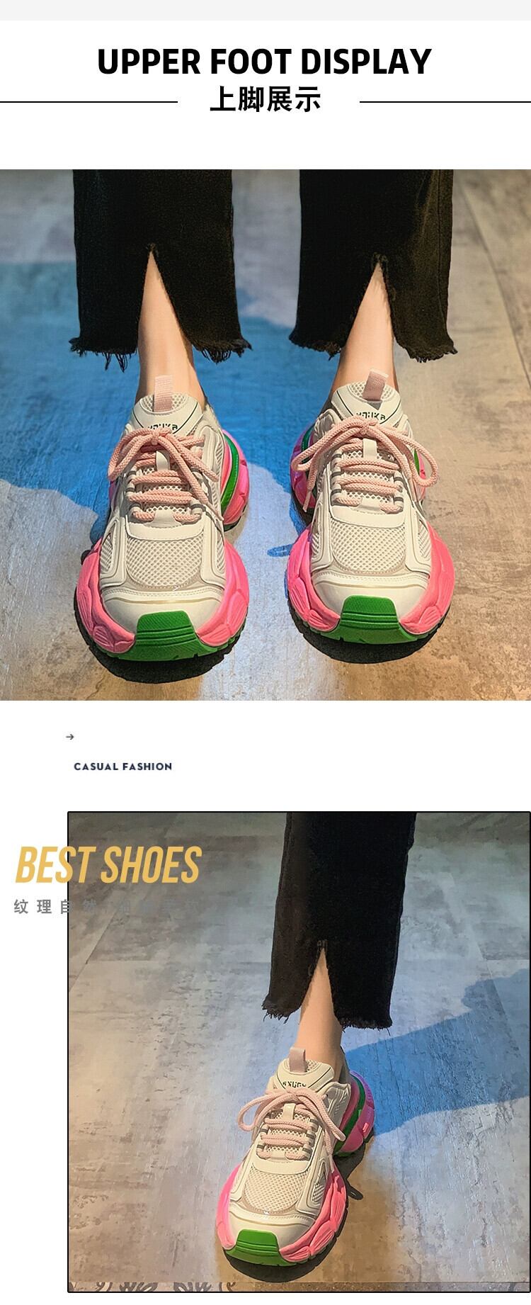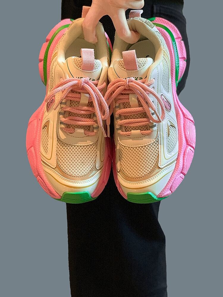 Jiabu 偽スポーツシューズの女性の 2023 夏の新通気性 comtable 強化トレンディな厚底ランニングカジュアルシューズ 靴 サマー 夏物 jxjxf81850207079