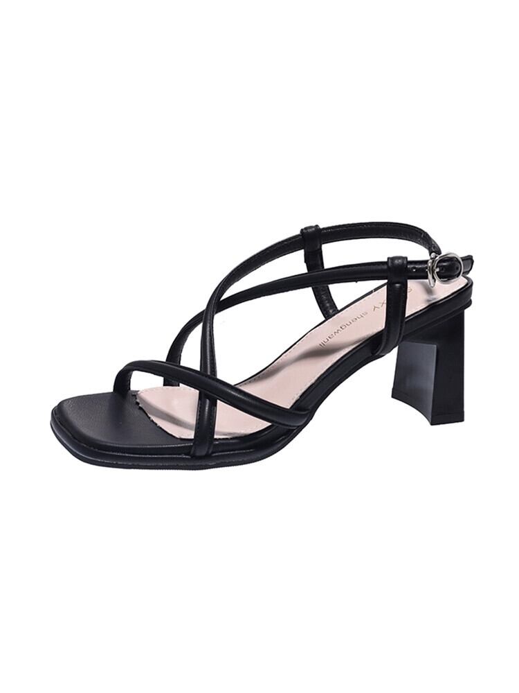 Jiabu 偽厚いヒールローマサンダル女性の 2023 夏の新フランスの気質レトロファッションオールマッチハイヒール 靴 シューズ サマー 夏物 jxjxf2773037506