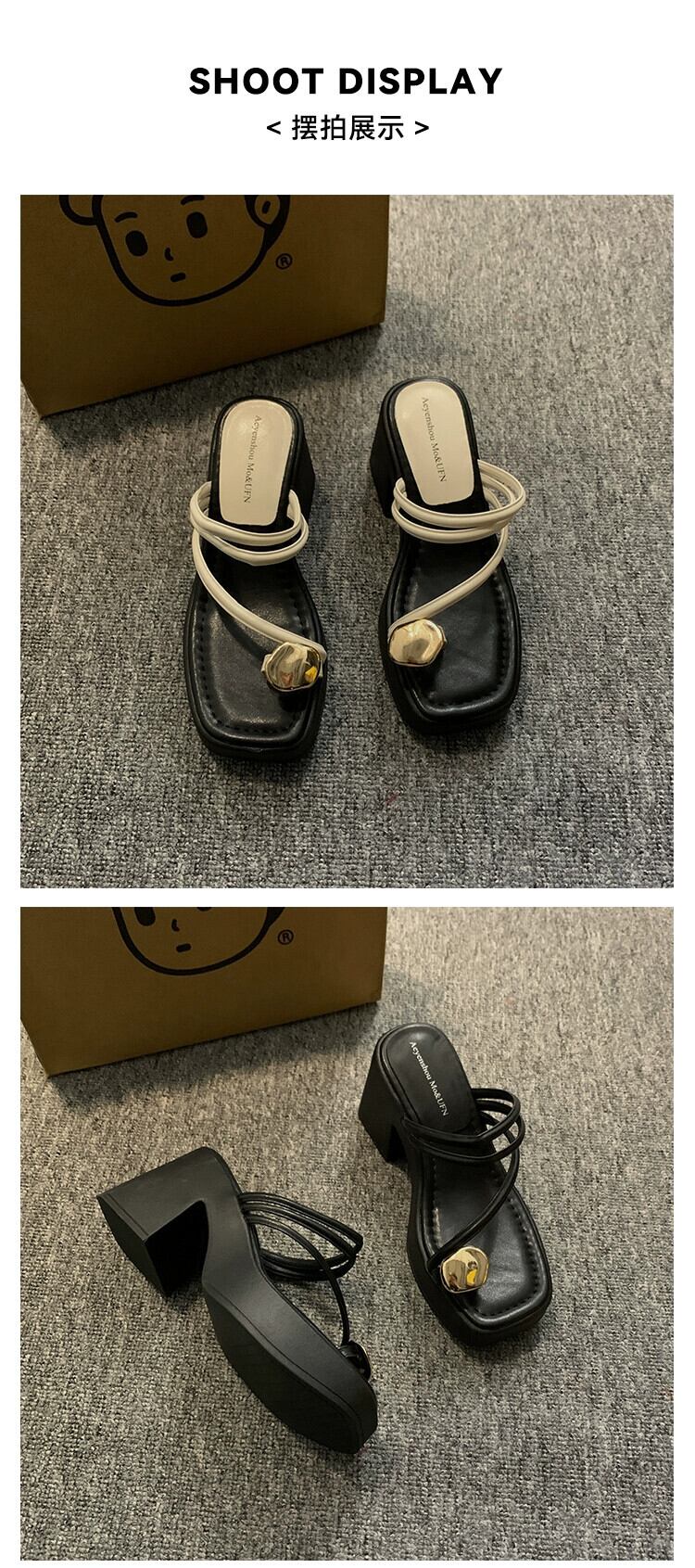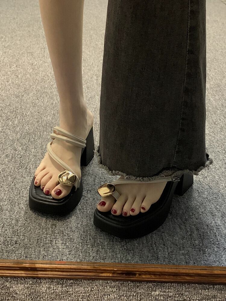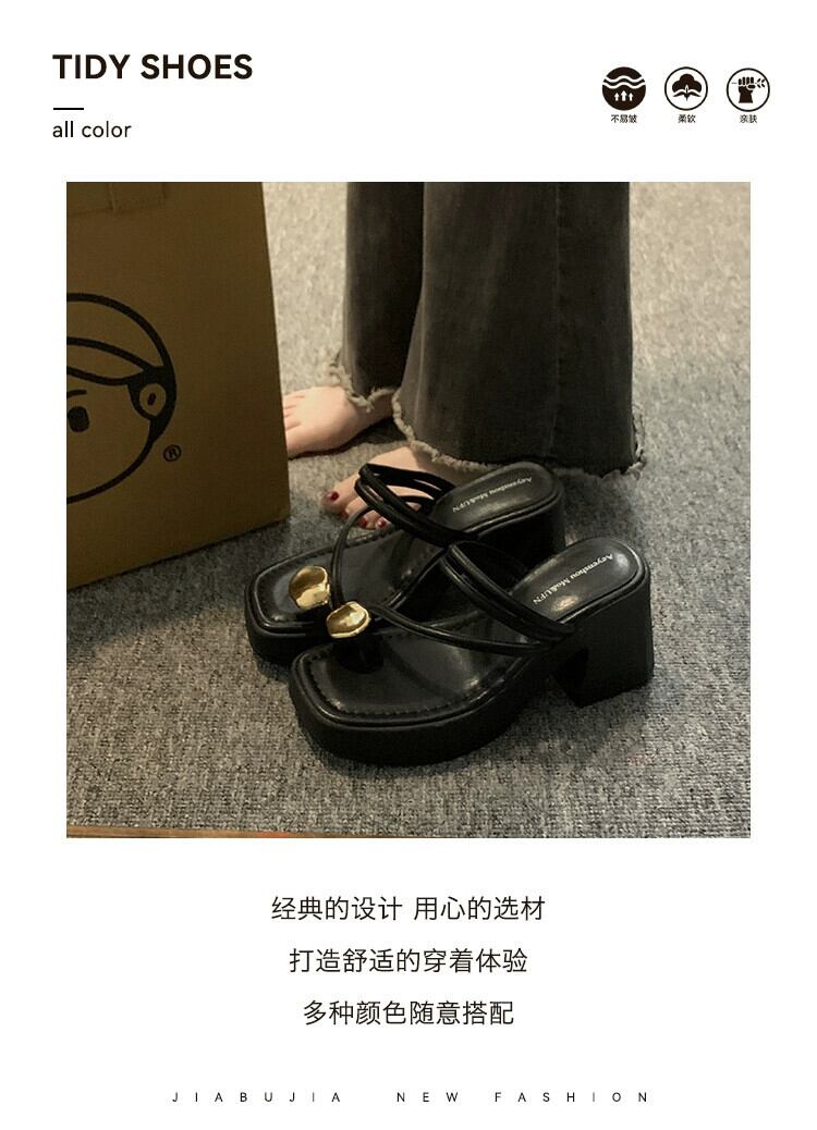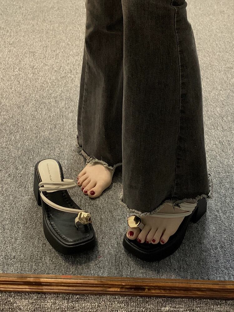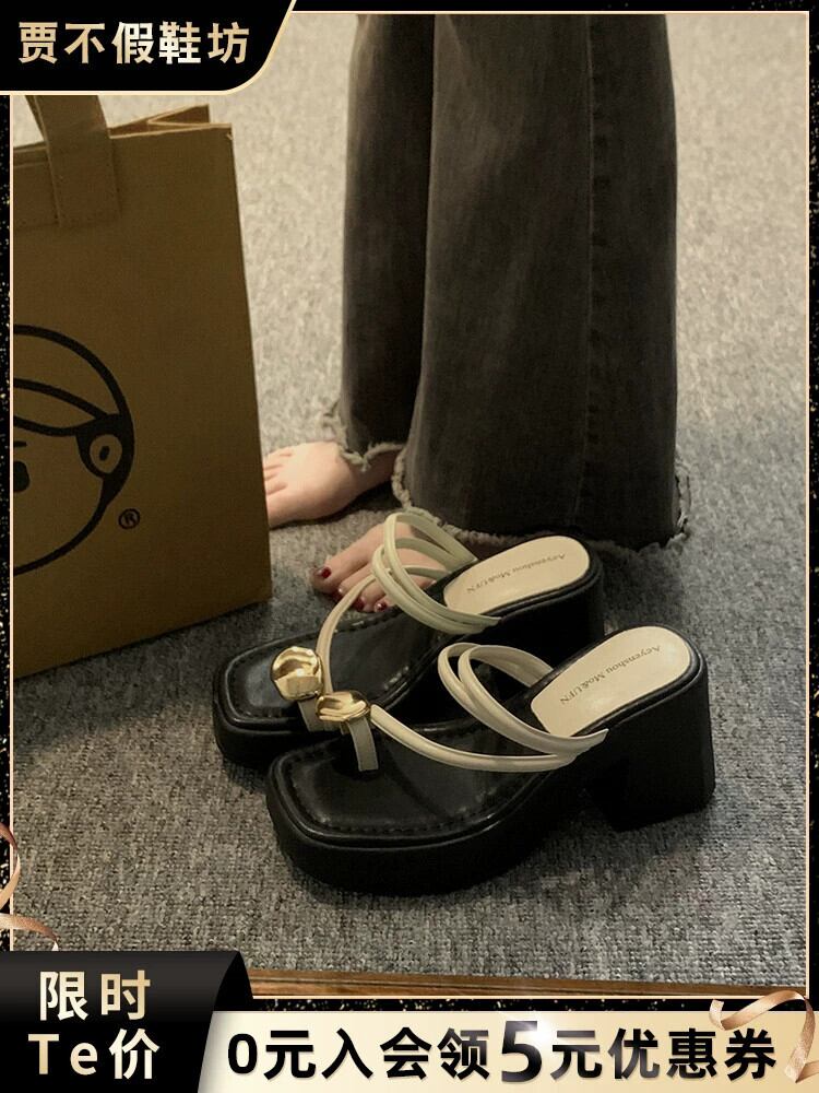 Jiabu 偽セットトゥスリッパ女性の 2023 夏の新しいスタイルのアウターウェアオールマッチ小さなハイヒール eign スタイルのサンダルとスリッパのトレンド 靴 シューズ ミュール サマー 夏物 jxjxf57785113921