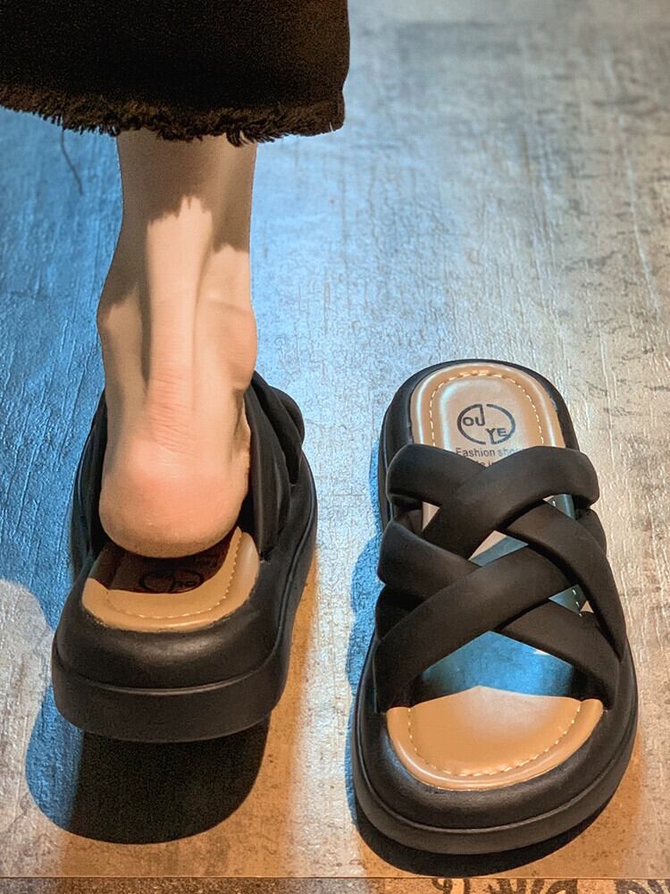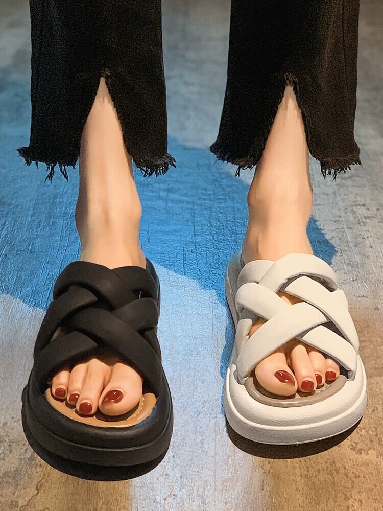 Jiabu 偽女性スリッパ 2023 夏の新しいスタイルのアウターウェア超オールマッチレトロ織り厚底サンダルとスリッパのトレンド ミュール 靴 シューズ サマー 夏物 jxjxf80357624984
