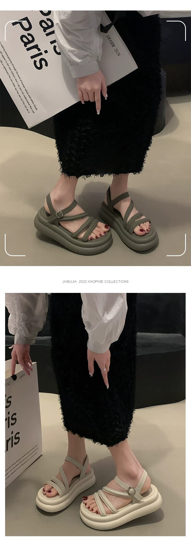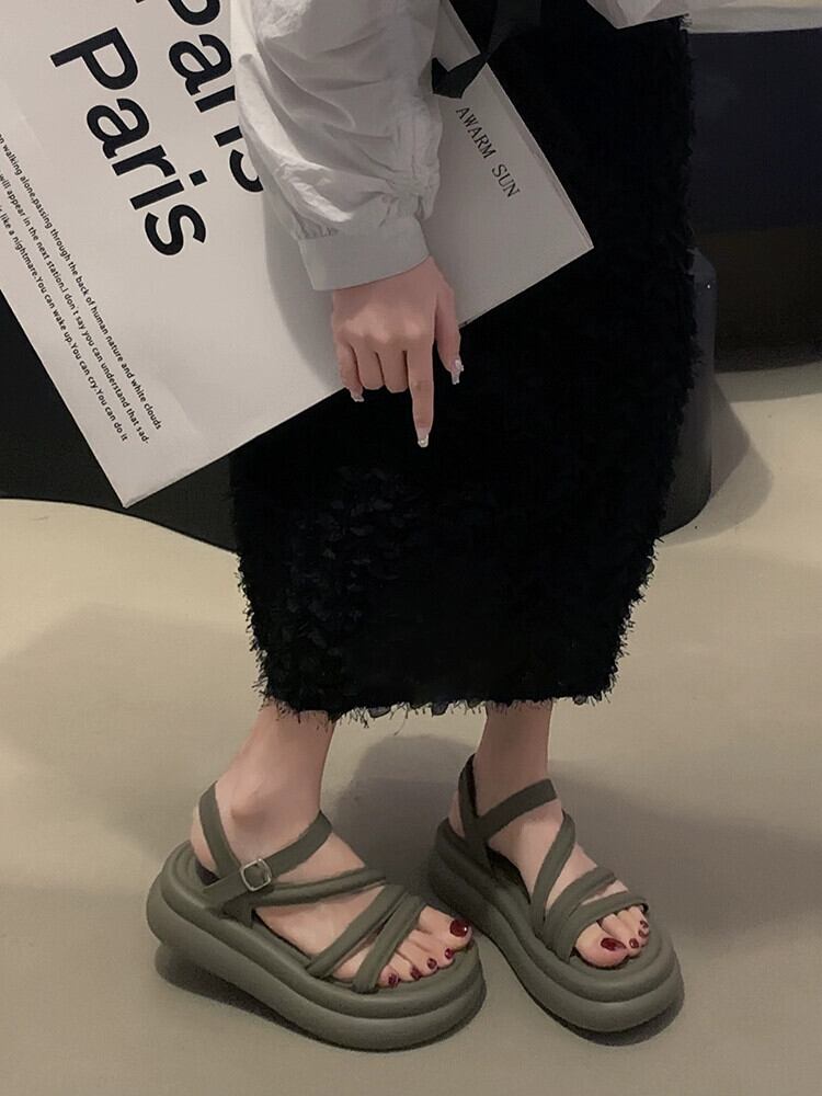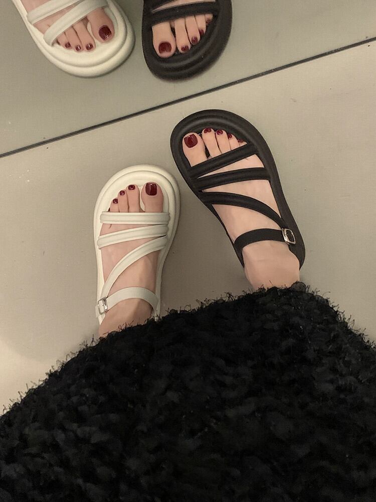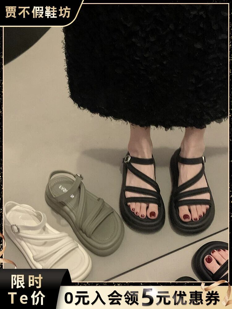 Jiabu 偽サンダルの女性の 2023 夏の新レトロ comtable 小型オールマッチ厚底カジュアルローマンシューズ 靴 サマー 夏物 jxjxf72304589319
