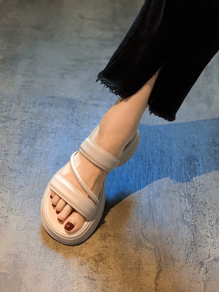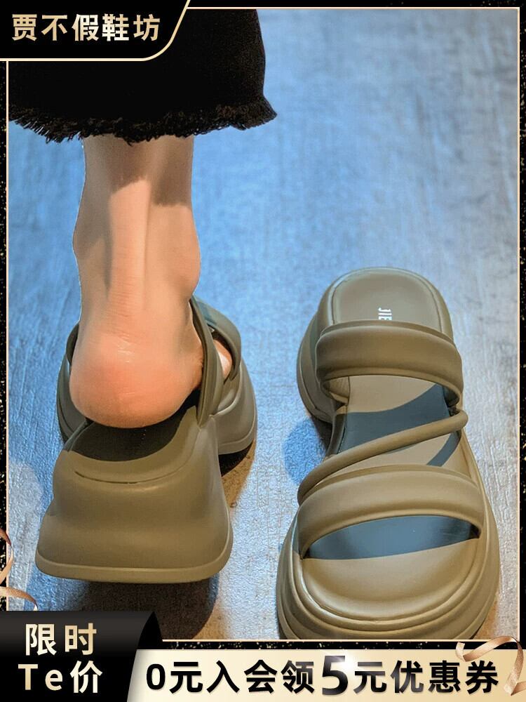 Jiabu 偽の女性のスリッパのアウターウェア、2023 年の夏の新しい超快適なオールマッチの小さな厚底サンダルとスリッパ ミュール 靴 シューズ サマー 夏物 jxjxf55893040377