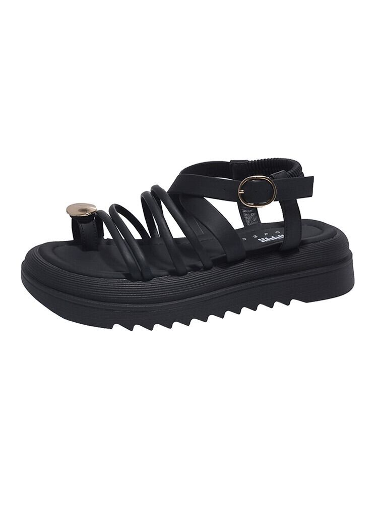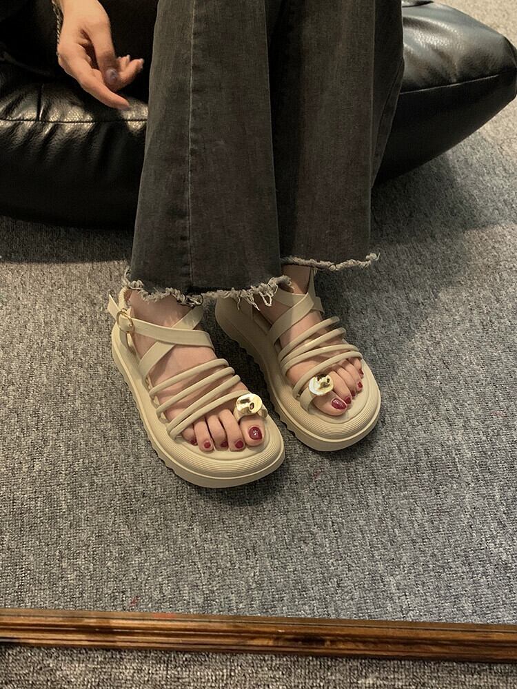 Jiabu フェイクセットトゥローマンサンダルレディース 2023 夏の新スタイルメタルシンプルカジュアル厚底ビーチシューズ 靴 サマー 夏物 jxjxf99885178148