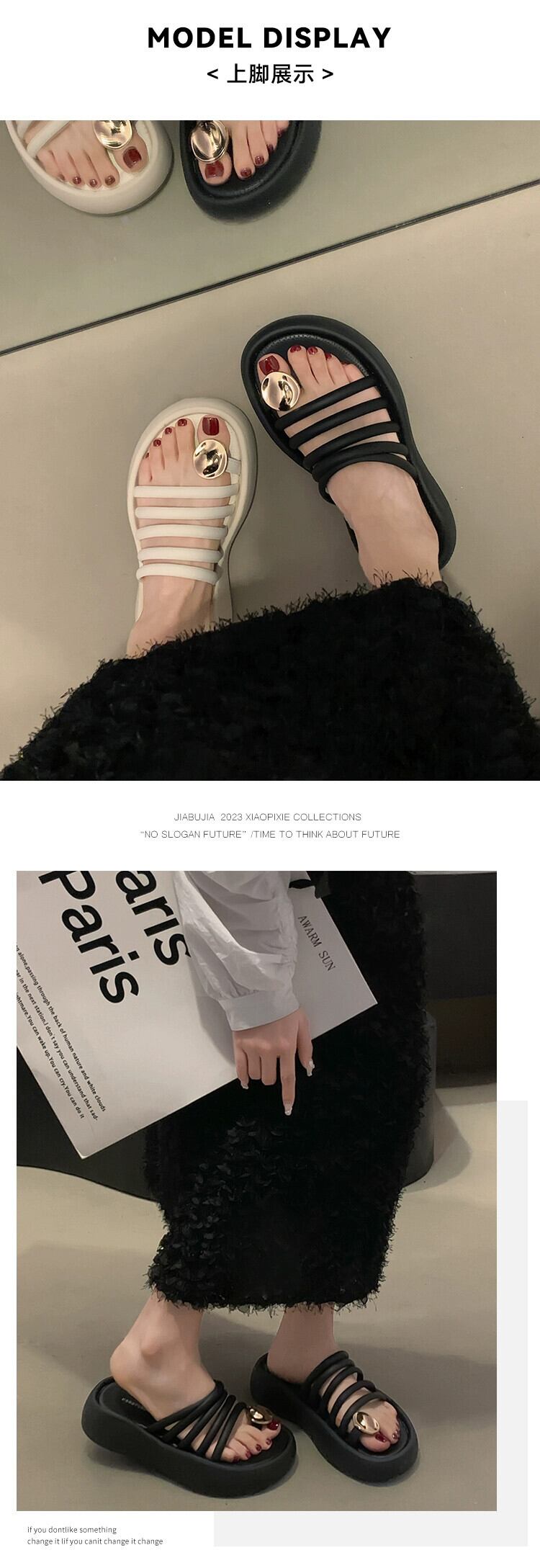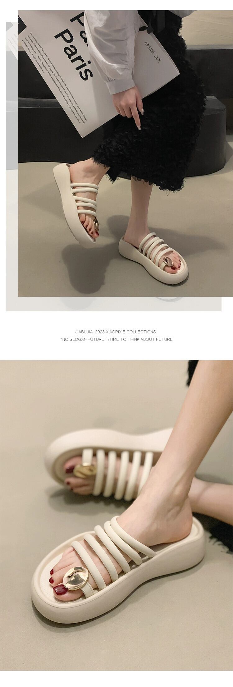 Jiabu 偽オンラインセレブスリッパレディースアウター 2023 夏の新オールマッチレトロ eign スタイル厚底セットトゥサンダルとスリッパ ミュール 靴 シューズ サマー 夏物 jxjxf48271073707