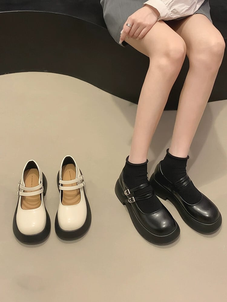 Jiabu 偽厚底シングルシューズレディース 2023 夏の新ファッション気質学生 comtable メリージェーン革靴 サマー 夏物 レザー jxjxf60401513298