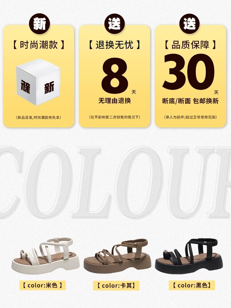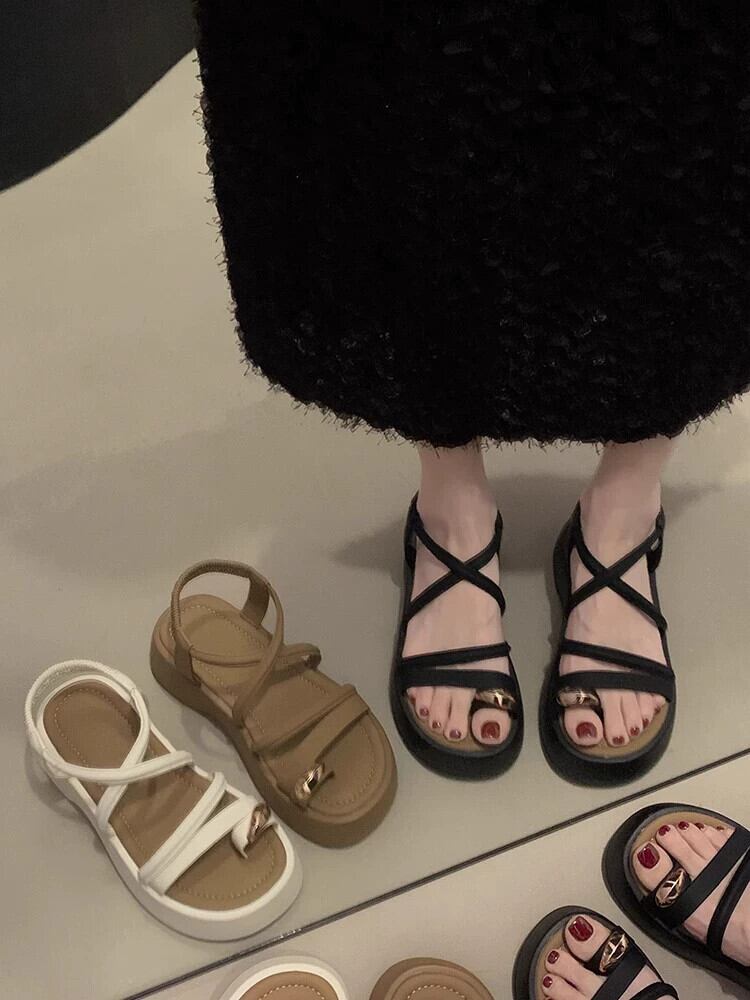 Jiabu 偽女性のセットトゥサンダル 2023 夏の新シンプルなレトロ高められた厚いヒールカジュアルビーチシューズトレンド 靴 サマー 夏物 jxjxf73728199723