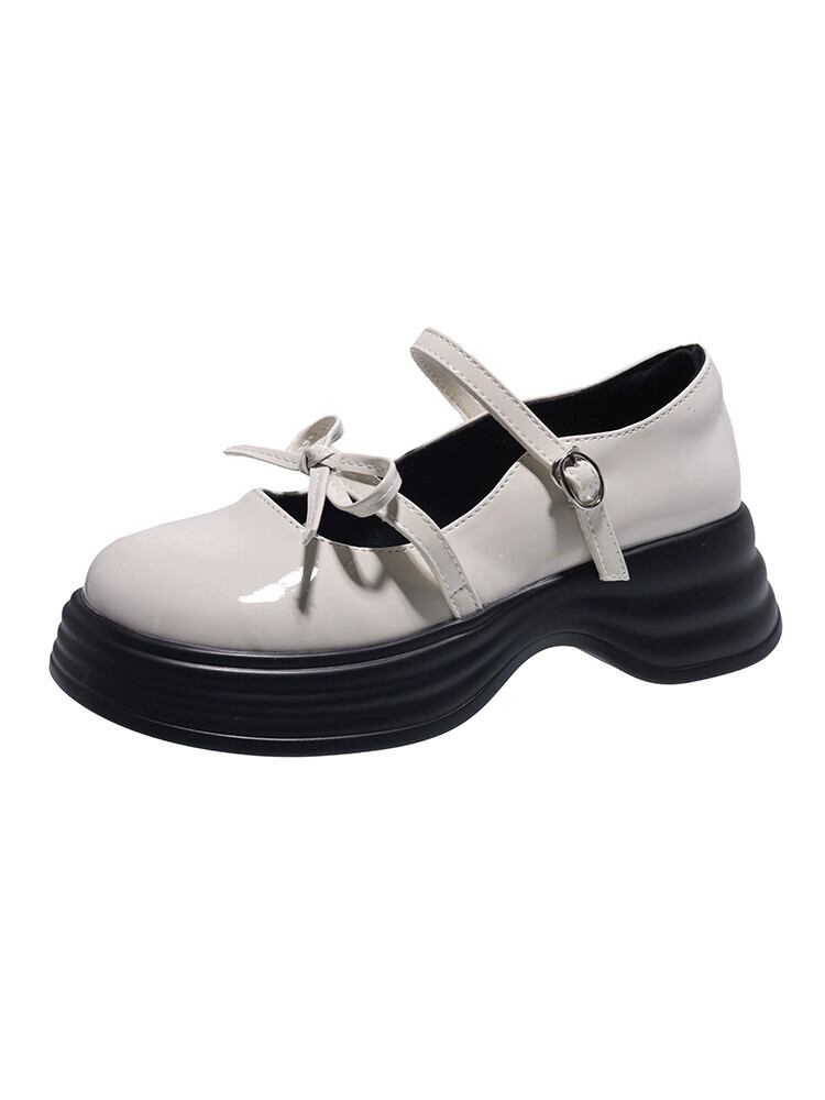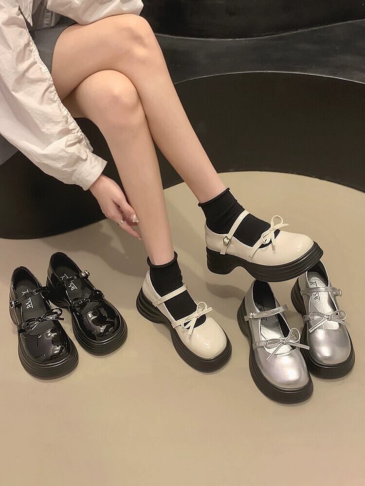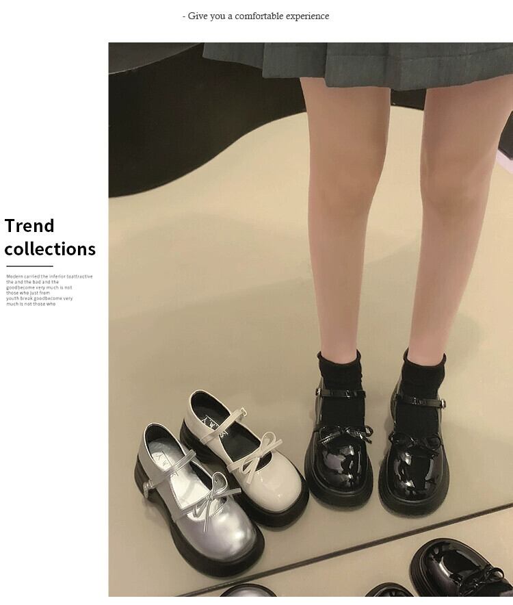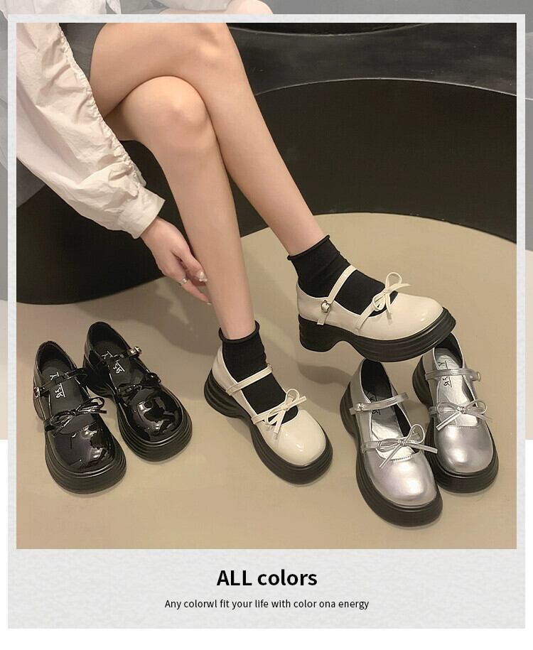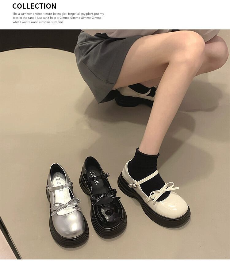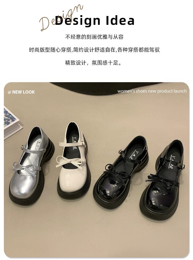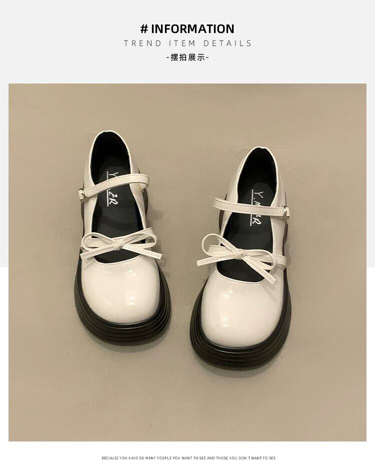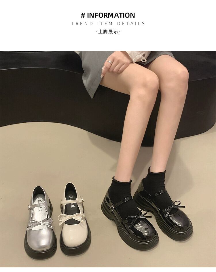 Jiabu 偽メリージェーン婦人靴 2023 夏の新ファッション弓小さな厚底甘い革靴 シューズ リボン 大人ガーリー スウィート キュート カジュアル サマー 夏物 レザー jxjxf14164362797