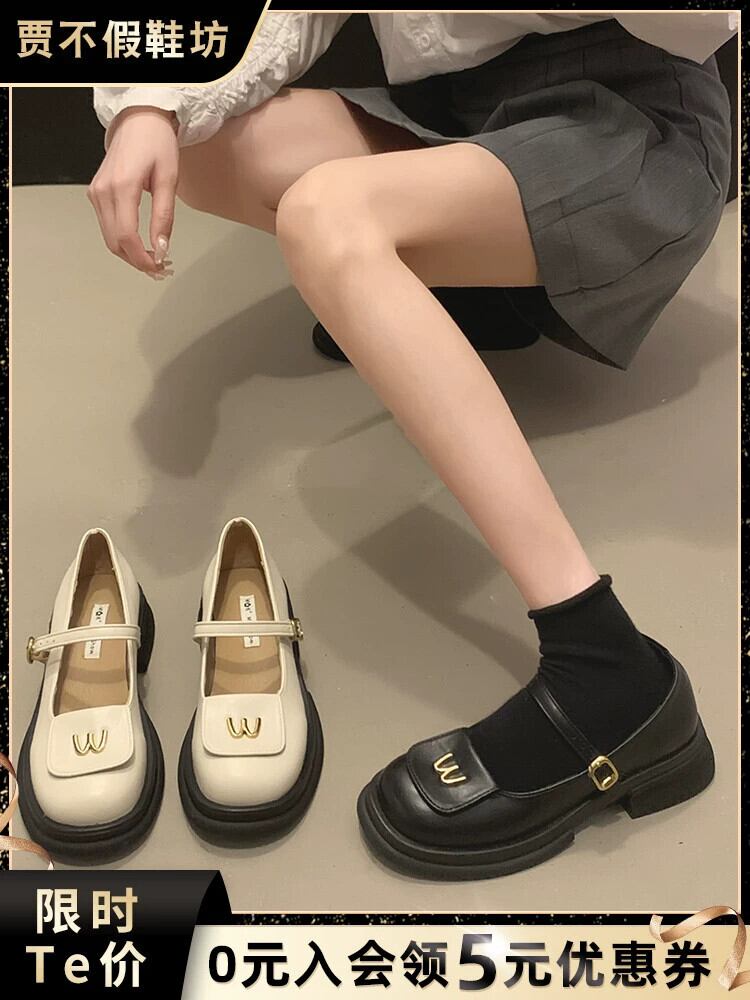 Jiabu 偽スタイルシングルシューズ女性の 2023 夏の新フレンチスタイルのレトロな気質厚いヒールメリージェーン革靴トレンド サマー 夏物 レザー jxjxf94456834308