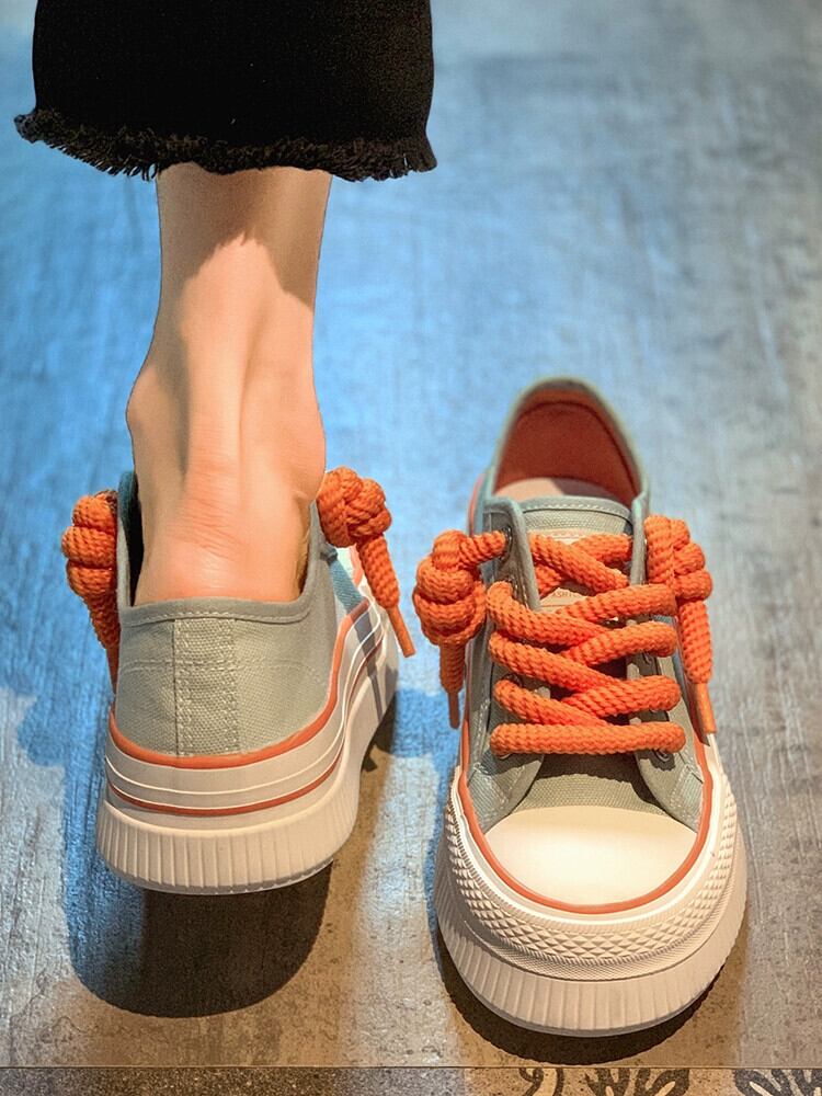 Jiabu 偽の女性のカジュアル布靴 2023 夏の新しいストリートスタイルオールマッチ学生厚底コンタブルライトスニーカー シューズ サマー 夏物 jxjxf42507478249
