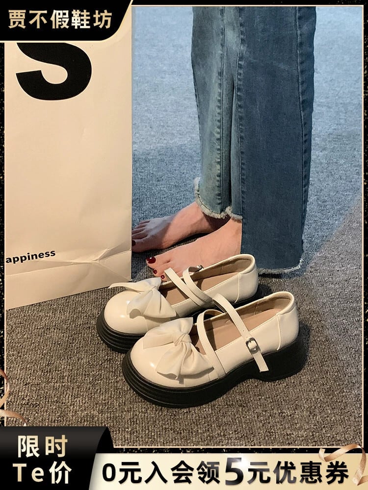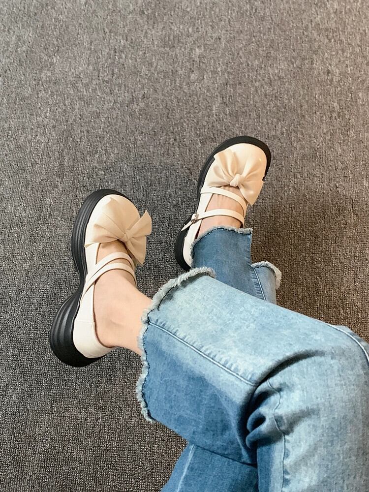 Jiabu 偽シングルシューズ女性の 2023 夏の新ファッションかわいいちょう結び厚底甘いメリージェーン靴 リボン 大人ガーリー スウィート キュート カジュアル サマー 夏物 jxjxf25934306445