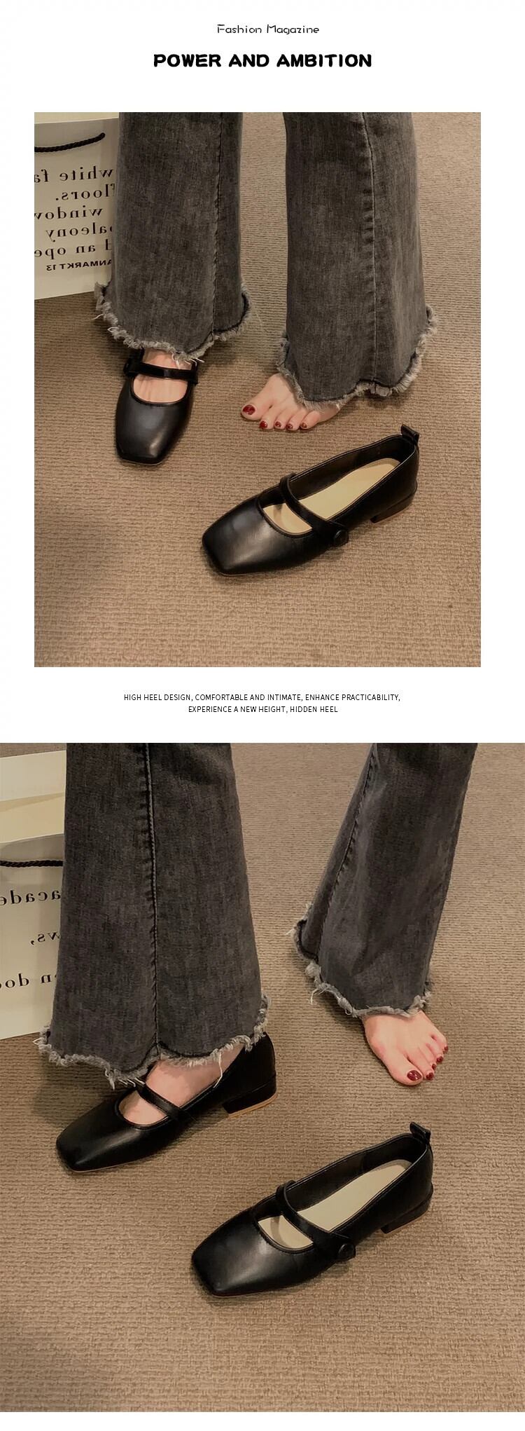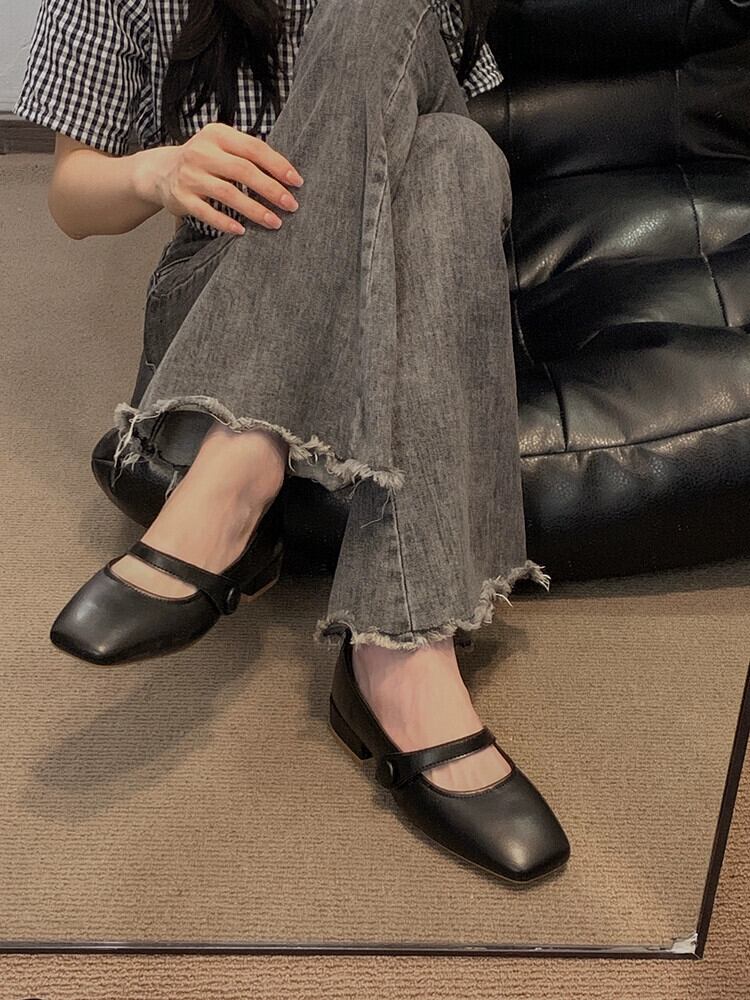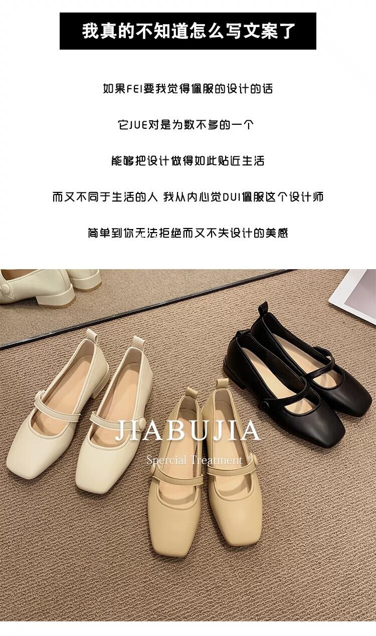 Jiabu 偽スクエアトゥシングルシューズ女性の 2023 夏の新フランスの気質レトロ厚いヒールメリージェーン革靴トレンド サマー 夏物 レザー スクウェア jxjxf40143215155