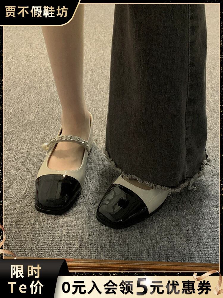 Jiabu 偽スクエアトゥシングルシューズ女性の 2023 夏の新ファッションオールマッチレトロ厚いヒール eign スタイルメリージェーン靴トレンド サマー 夏物 スクウェア jxjxf2702482516