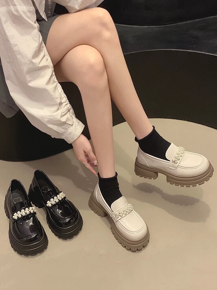 Jiabu 偽ネット赤シングルシューズ女性の 2023 夏の新ファッションレトロラインストーン通勤 comtable 厚底ローファー 靴 レッド サマー 夏物 jxjxf16341757794