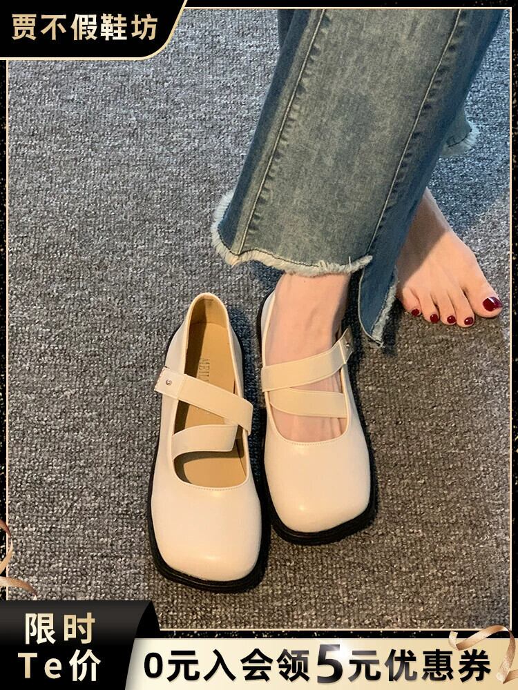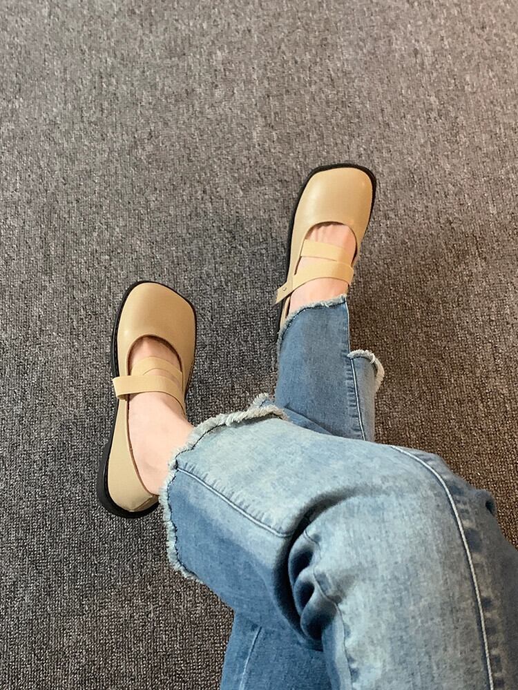 Jiabu 偽ネットレッドシングルシューズ女性の 2023 夏の新ファッションオールマッチ優しいレトロな平底スクエアトゥ小さな革靴 サマー 夏物 レザー スクウェア jxjxf87675964539
