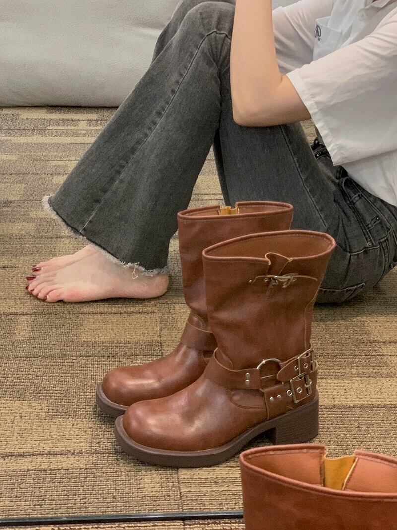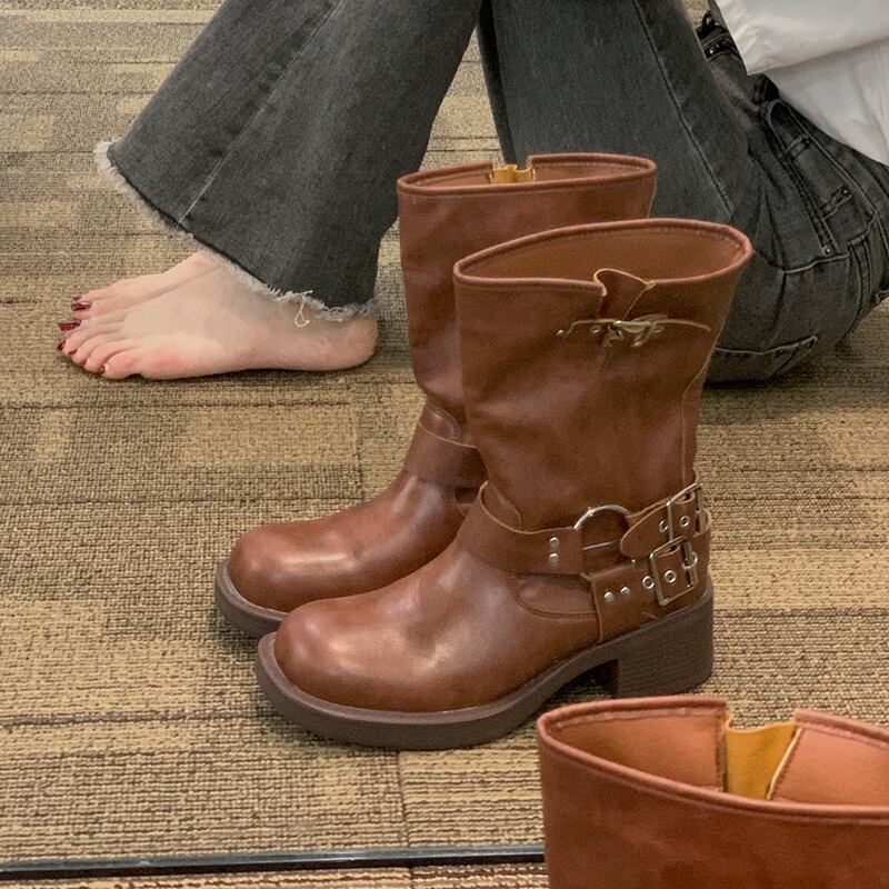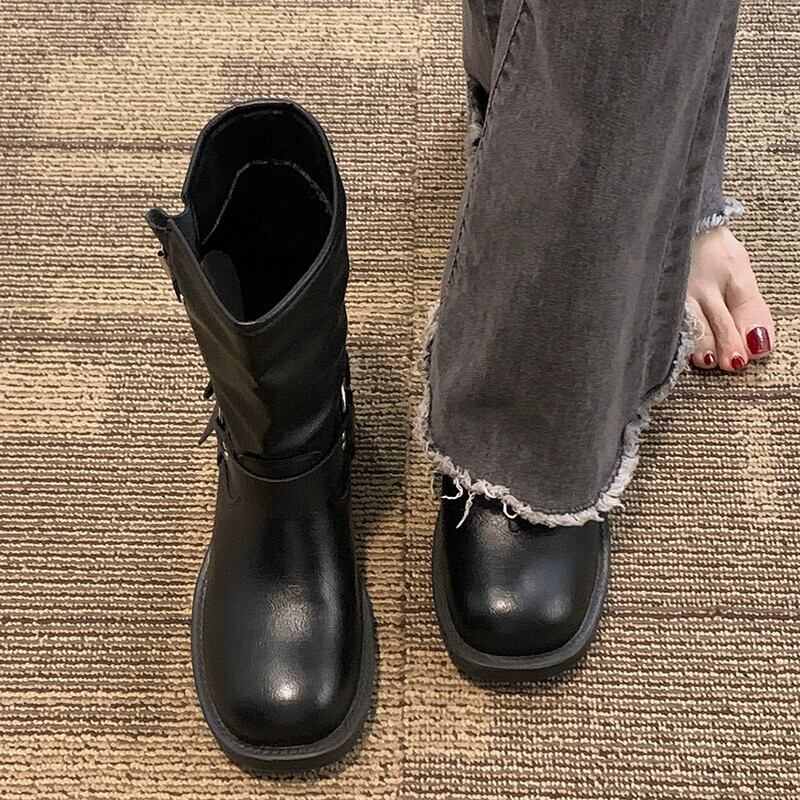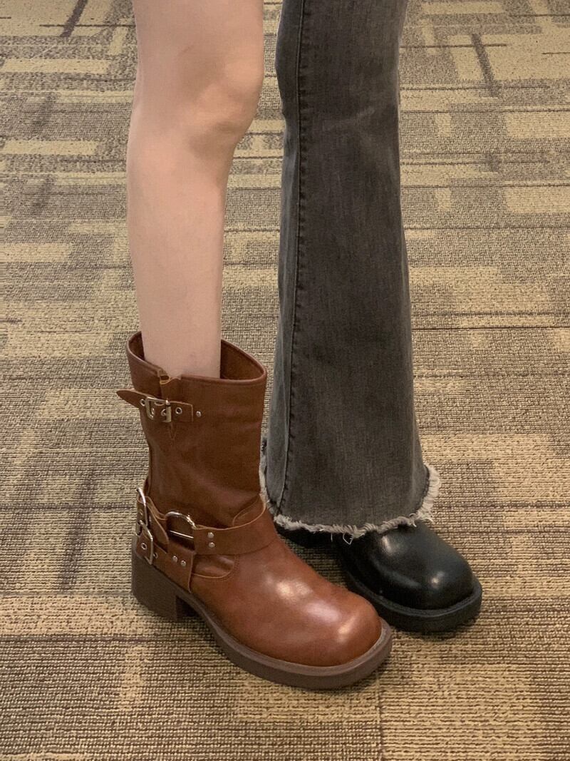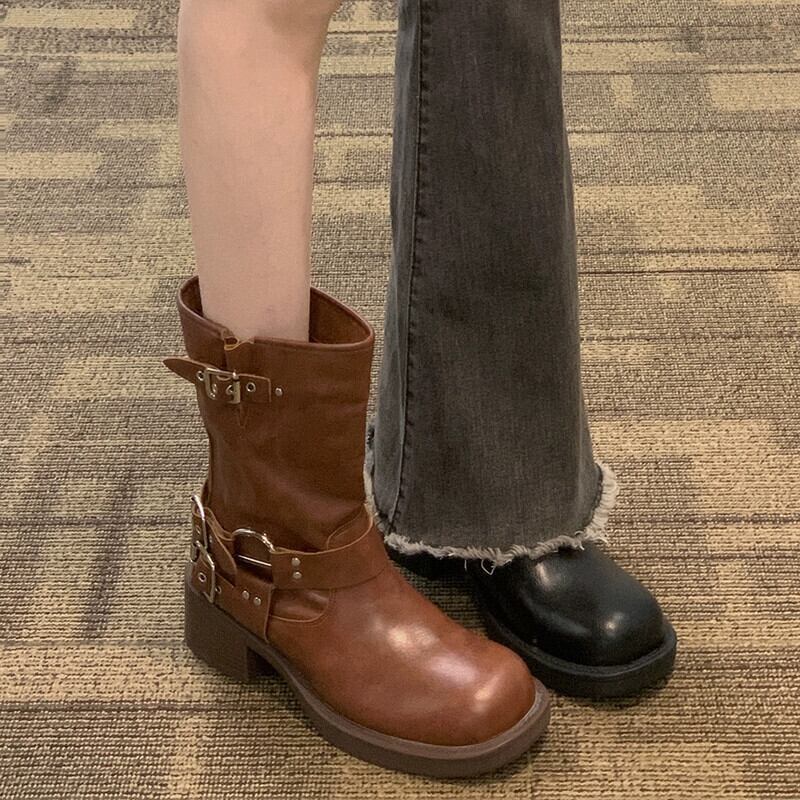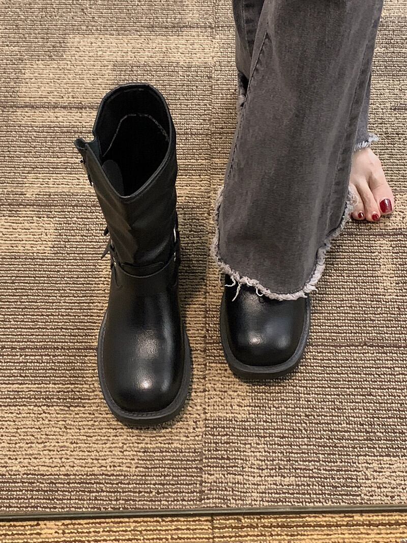 Jia Bujia インターネット有名人ショートブーツ女性 2023 夏の新ファッションファッション多用途レトロハンサムストリートオートバイブーツ 靴 シューズ サマー 夏物 jxjxf47267962362