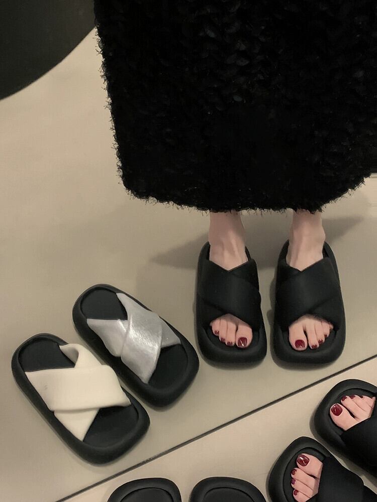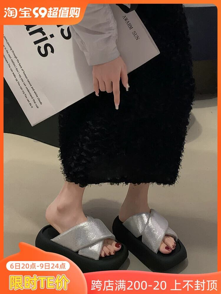Jia Bujia スリッパ女性の外で履く 2023 夏の新スタイルのシンプルなフレンチレトロ高められた厚底サンダル ミュール 靴 シューズ サマー 夏物 jxjxf32982242589