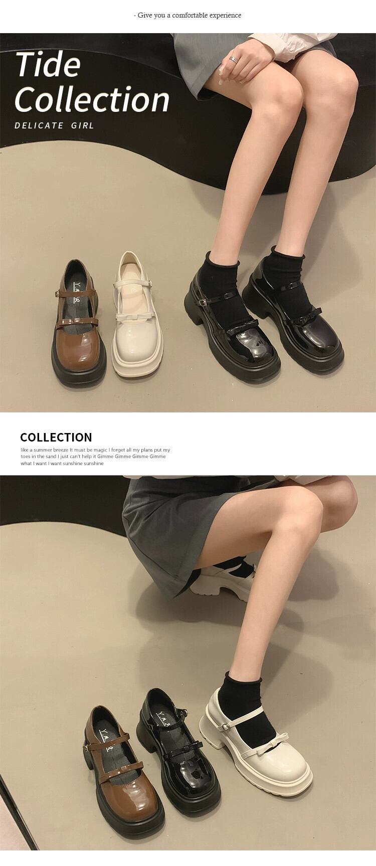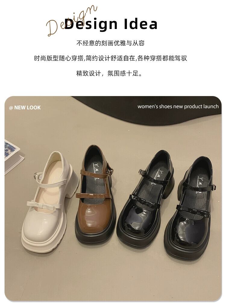 Jia Bujie レディース 2023 夏の新スタイルファッショナブルで多用途なレトロスタイルの厚いヒールの甘い小さな革靴 シューズ 大人ガーリー スウィート キュート カジュアル サマー 夏物 レザー jxjxf32054163366