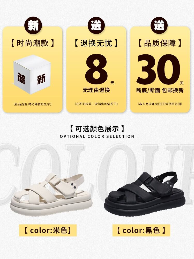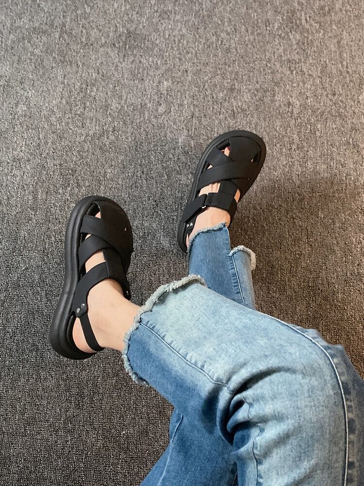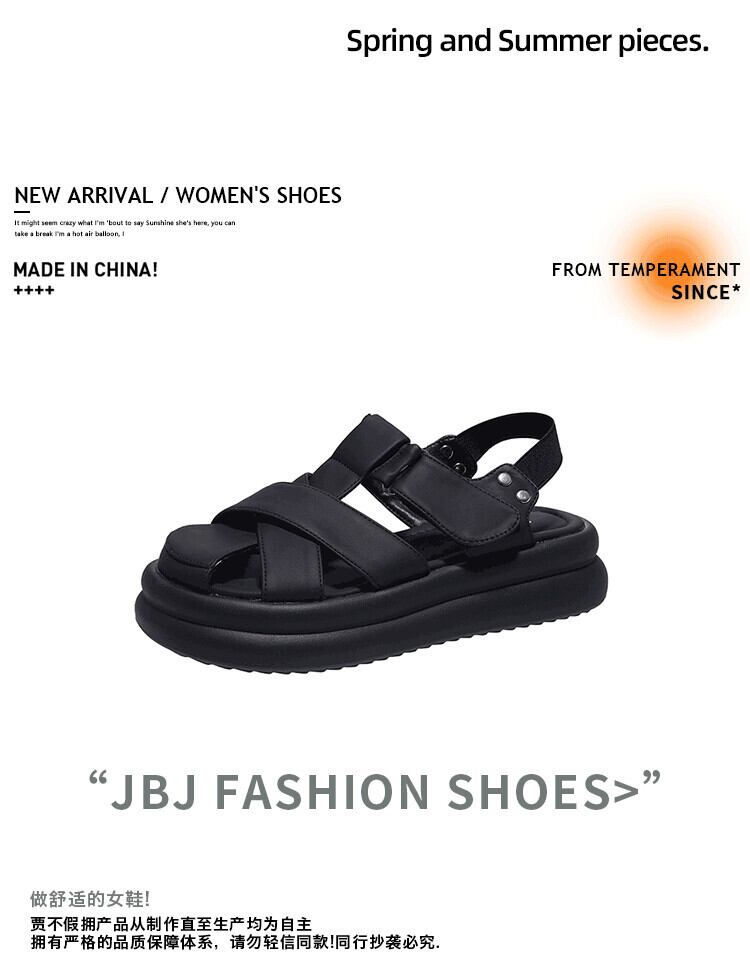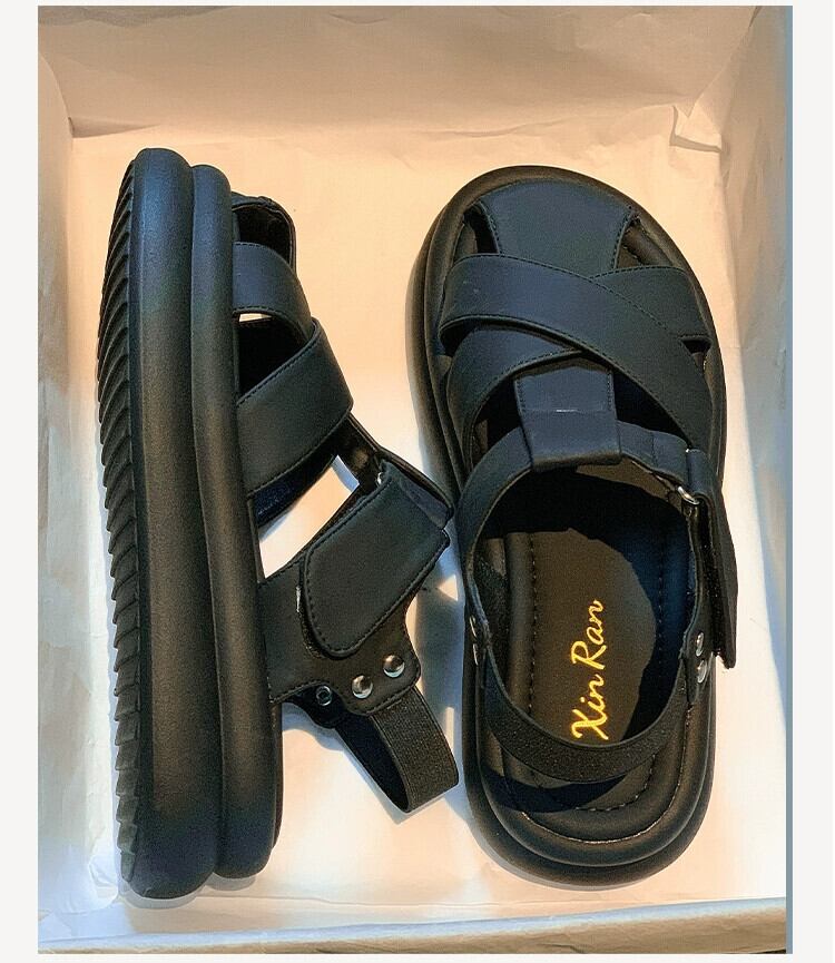 Jiabu 偽包頭サンダル女性の 2023 夏の新ファッションレトロオールマッチ学生厚底 comtable ローマンシューズ 靴 サマー 夏物 jxjxf85608261855