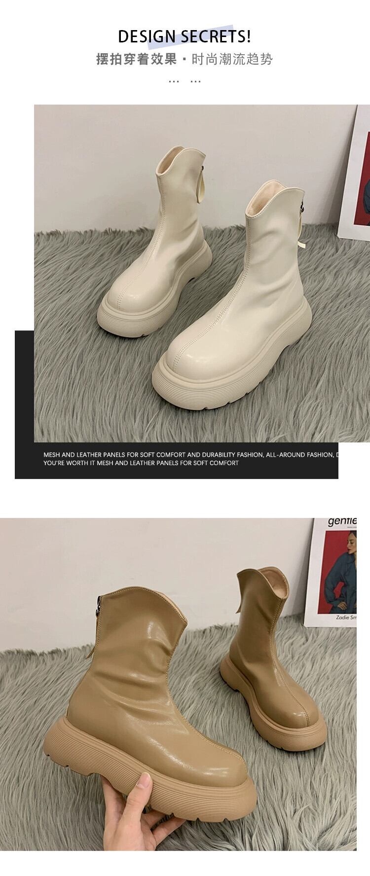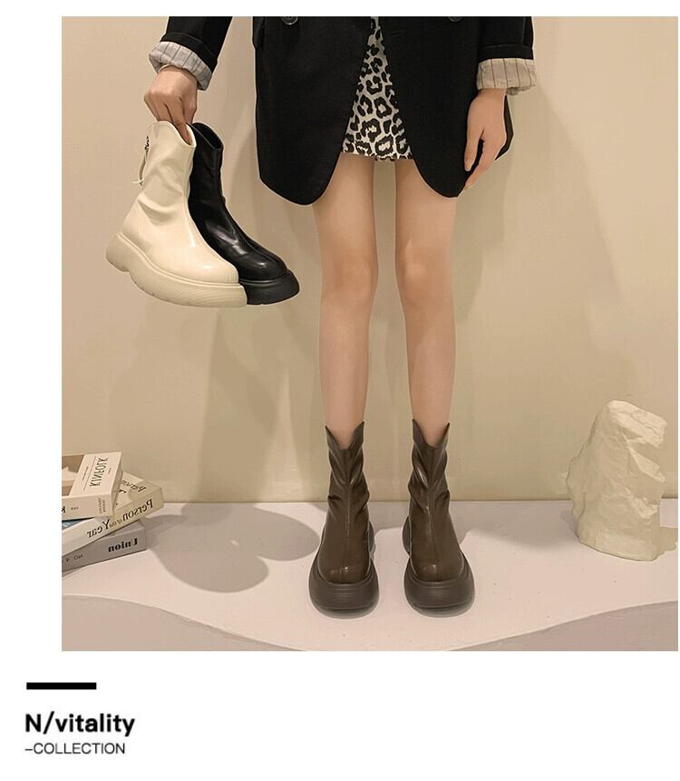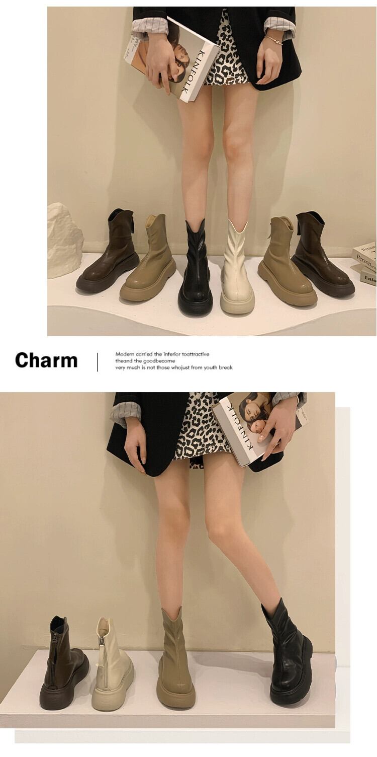Jia Bujia インターネット有名人ショートブーツの女性 2023 夏の新ファッションスリムで多用途な小型厚底レトロスリムブーツ 靴 シューズ サマー 夏物 jxjxf22330361563
