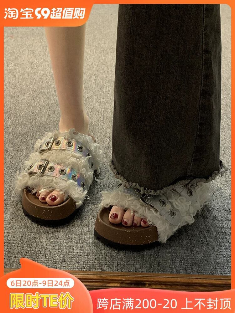 Jiabu 偽オンラインセレブスリッパ女性のアウターウェア 2023 夏の新ファッションレトロ comtable 厚底 eign スタイル豪華なスリッパ ミュール 靴 シューズ サマー 夏物 jxjxf6126013153