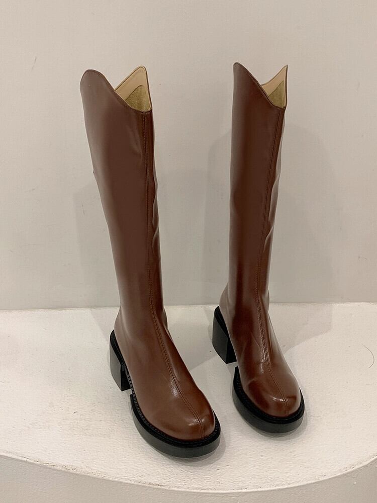 Jia Bufake ロングブーツの女性 2023 夏の新スタイルレトロオールマッチ小男スリム厚いヒールハンサム騎士ブーツ 靴 シューズ サマー 夏物 jxjxf35991710838