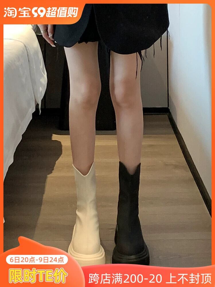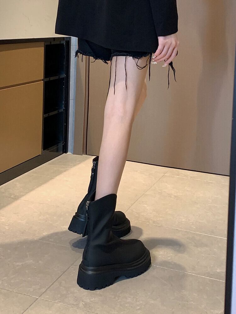 Jia Bujia インターネットセレブショートブーツ女性 2023 夏の新スタイルレトロオールマッチ小人厚底ストリートスリムブーツトレンディな 靴 シューズ サマー 夏物 jxjxf26479876719