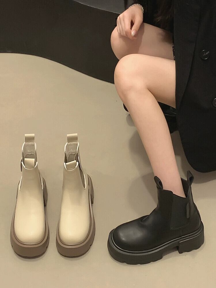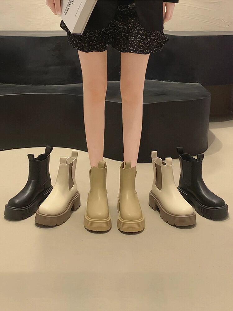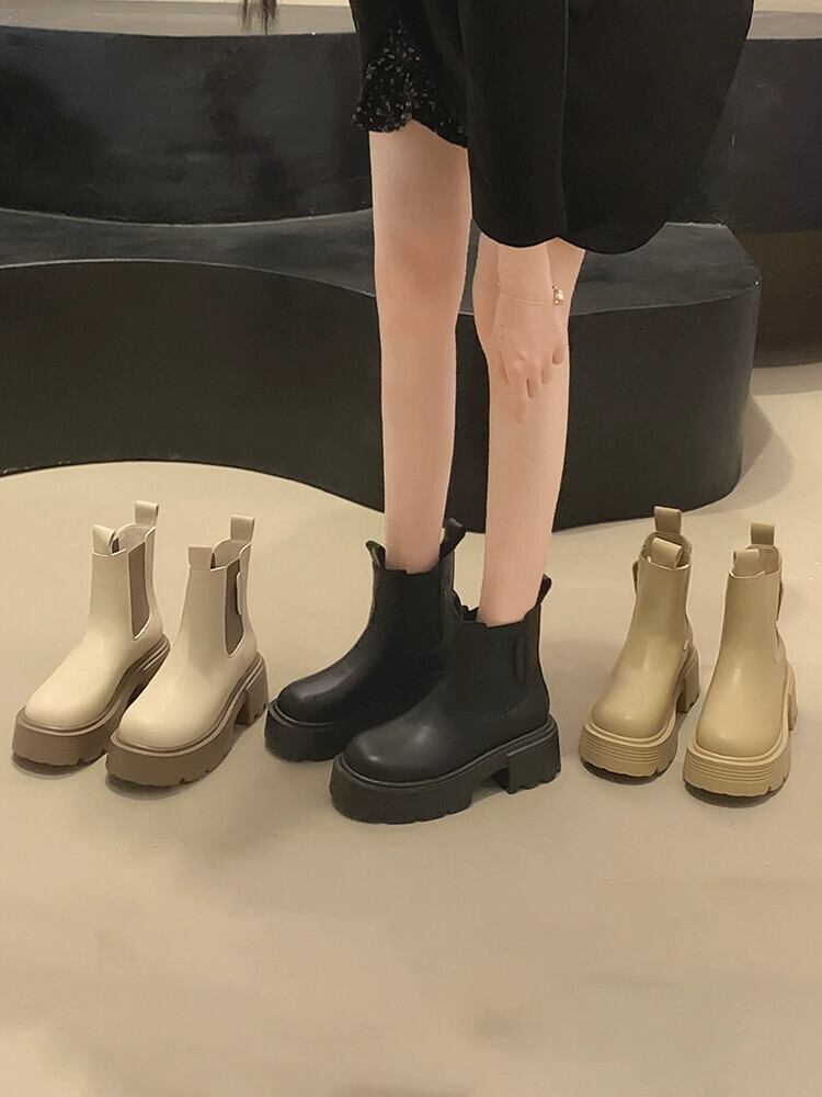 Jia Bufake 厚いヒールショートブーツの女性 2023 夏の新ファッション多用途レトロハンサムスリムチェルシーブーツ 靴 シューズ サマー 夏物 jxjxf23983999003