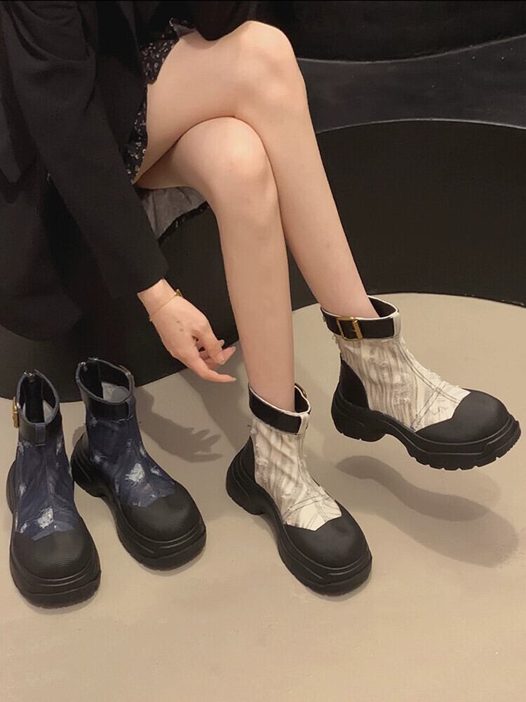 Jia Bujia インターネットセレブショートブーツ女性 2023 夏の新ファッション多用途レトロ痩身厚底ファッショナブルなスリムブーツ 靴 シューズ サマー 夏物 jxjxf5525861748