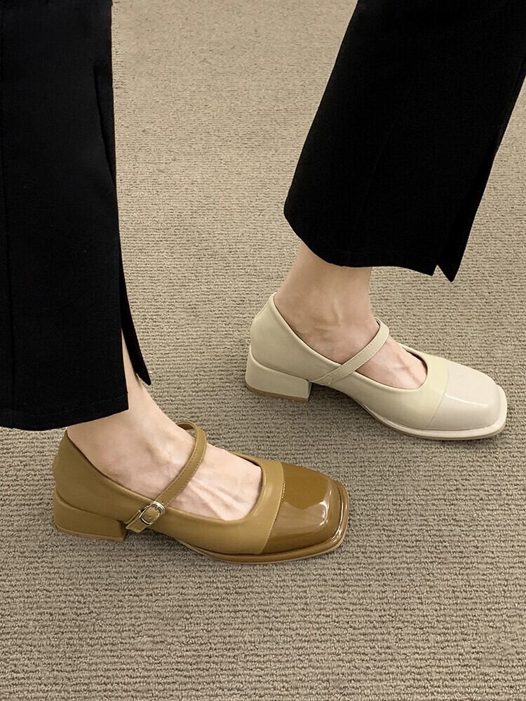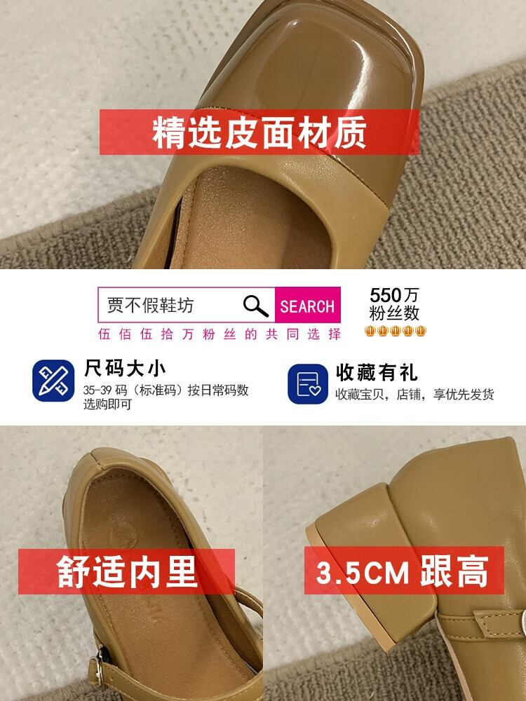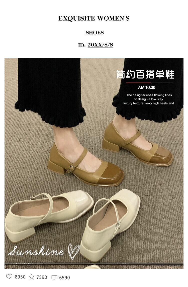 Jia Bujia スクエアトゥシングルシューズの女性 2023 夏多用途フレンチレトロ太いヒールメリージェーンの靴トレンディ サマー 夏物 スクウェア jxjxf33891334124