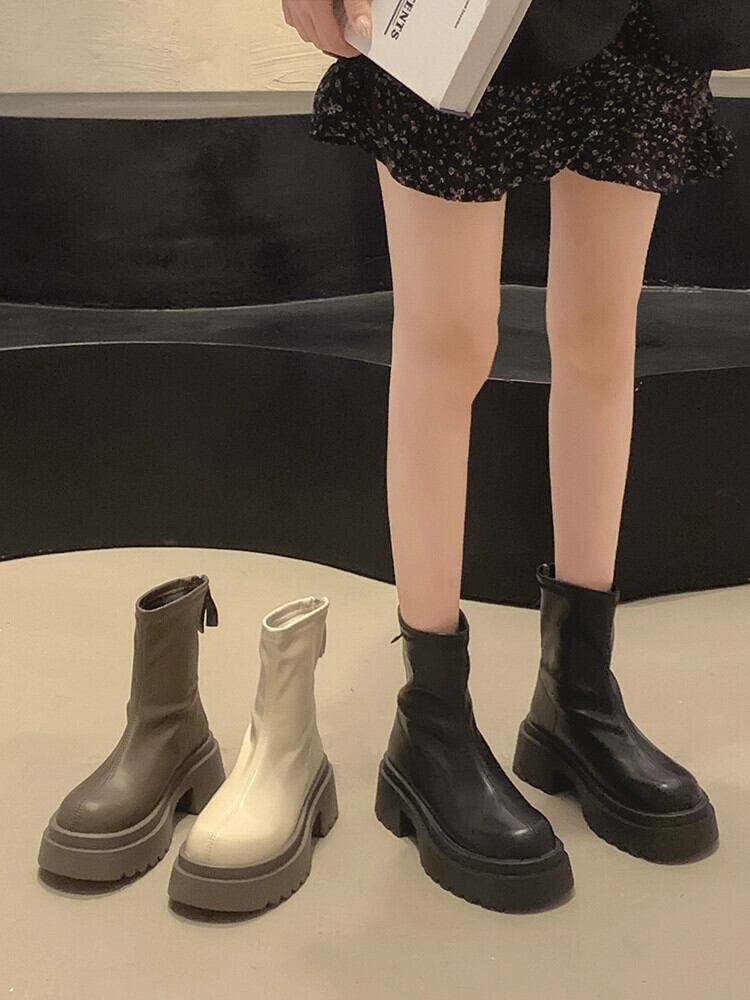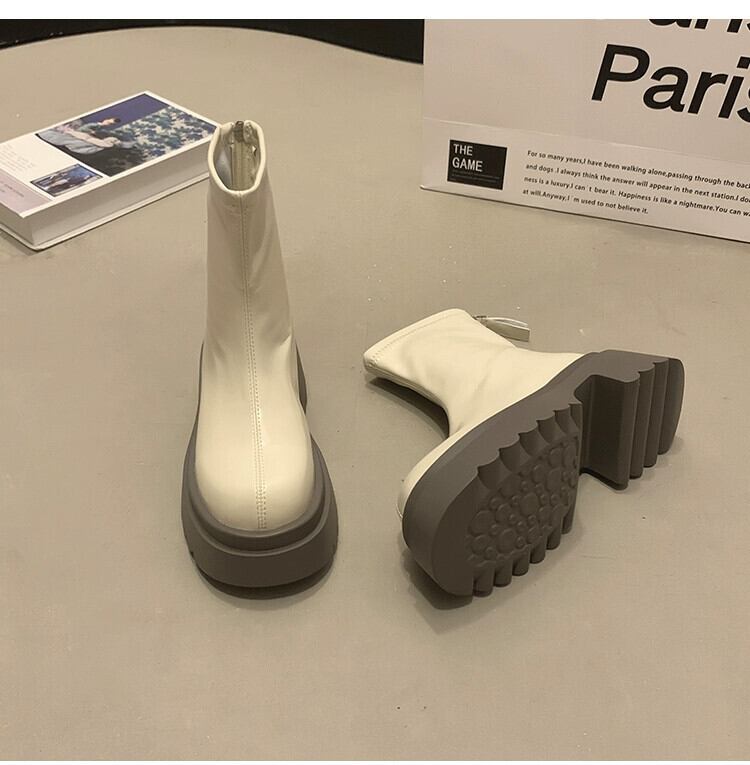 Jia Bufake 厚いヒールショートブーツの女性 2023 夏の新ファッションシンプルなレトロフレンチスタイル気質を高めるスリムブーツ 靴 シューズ サマー 夏物 jxjxf77415156303