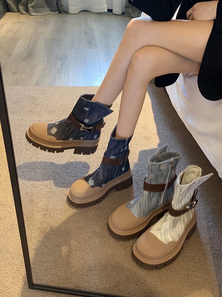 Jia Bufake ショートブーツ レディース 2023 夏 多用途 レトロ ハンサム 厚底 ストリート バイクブーツ トレンド 靴 シューズ サマー 夏物 jxjxf68835053526