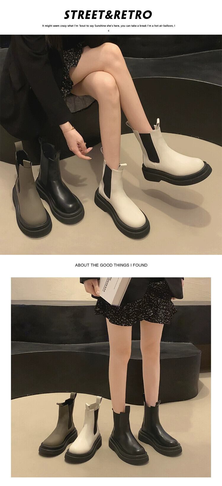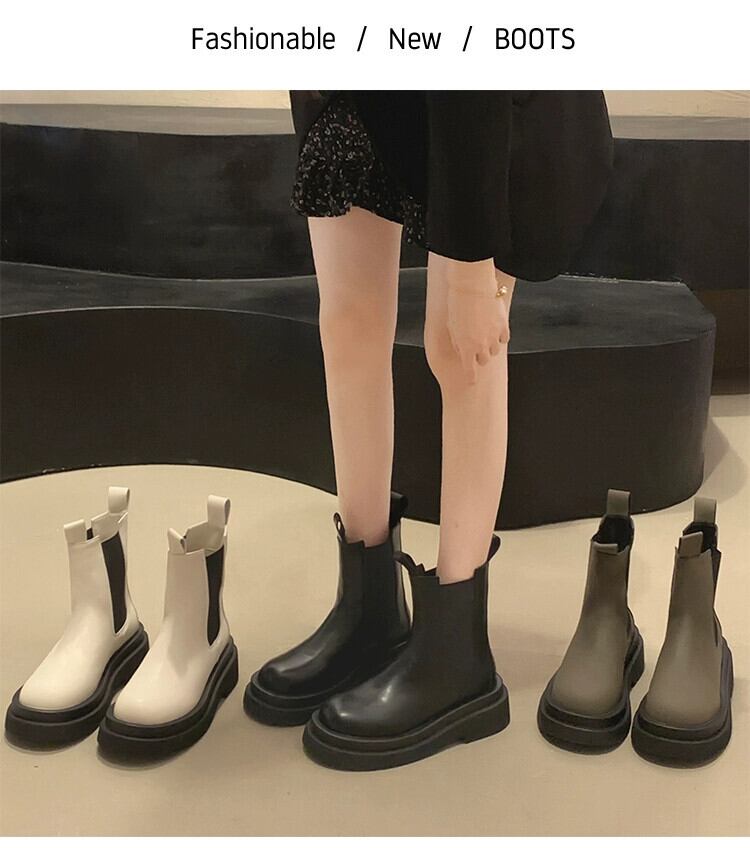 Jia Bujia 英国スタイルのショートブーツの女性 2023 夏の新ファッション多用途レトロハンサム厚底チェルシーブーツ 靴 シューズ サマー 夏物 jxjxf96044290506