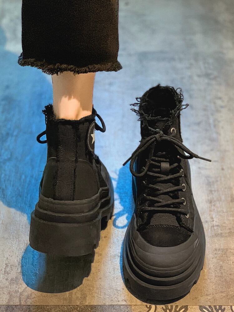 Jia Bujia キャンバスシューズ レディース、2023 新しい夏のスタイル、多用途、軽量、厚底、快適なハイトップシューズ学生 靴 サマー 夏物 jxjxf39189876353