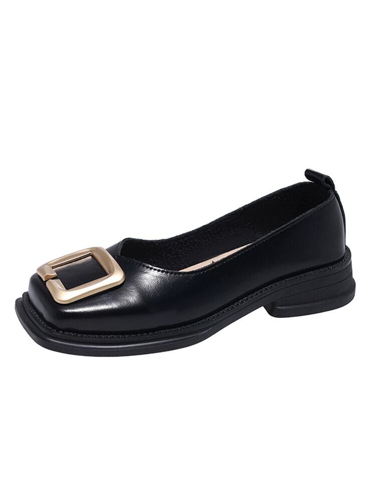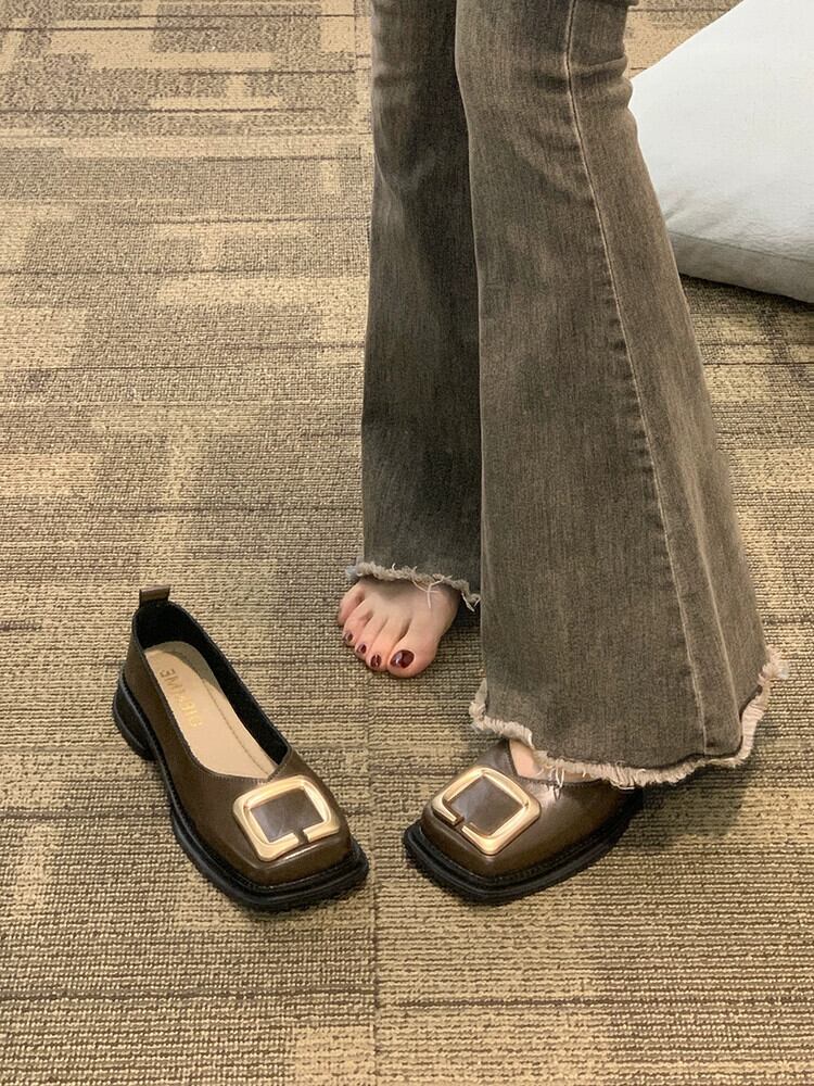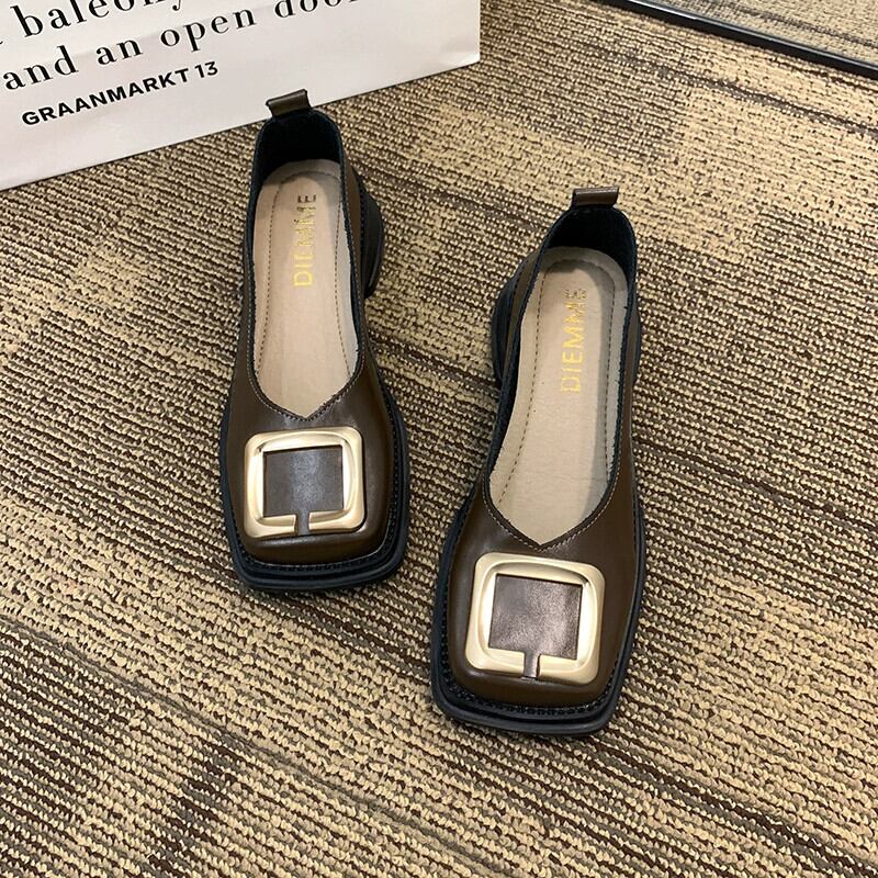 インターネット有名人のシングルシューズの女性 2023 春の新ファッション多用途レトロメタル厚いヒールノンスリップスクエアトゥ小さな革靴トレンド スプリング 春物 レザー スクウェア jxjxf92118553894