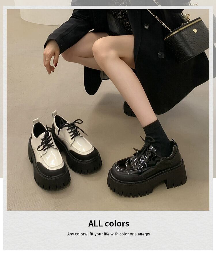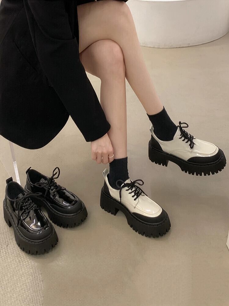 英国スタイルのシングルシューズの女性の 2023 春の新ファッションオールマッチ eign スタイル太いヒール滑り止めトレンドレトロな小さな革靴 スプリング 春物 レザー jxjxf58573524715