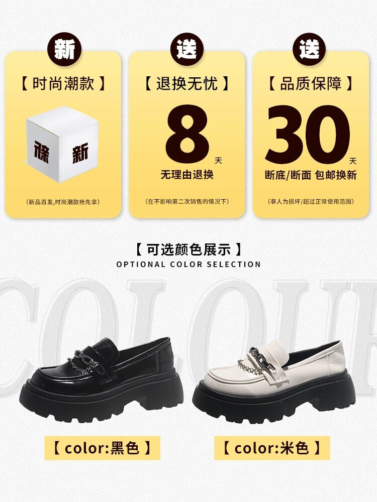 Jia Bujia 英国スタイルのローファーの女性 2023 夏の新ファッション多用途金属チェーン太いヒールの小さな革靴トレンド シューズ サマー 夏物 レザー jxjxf675524406