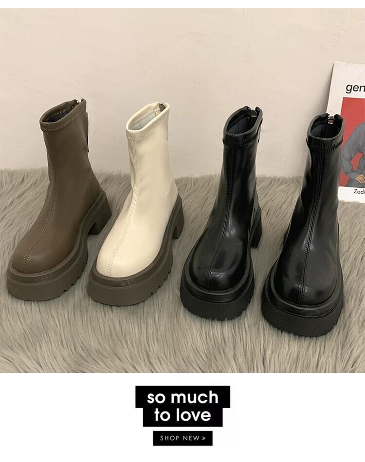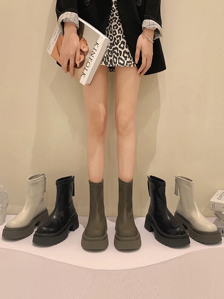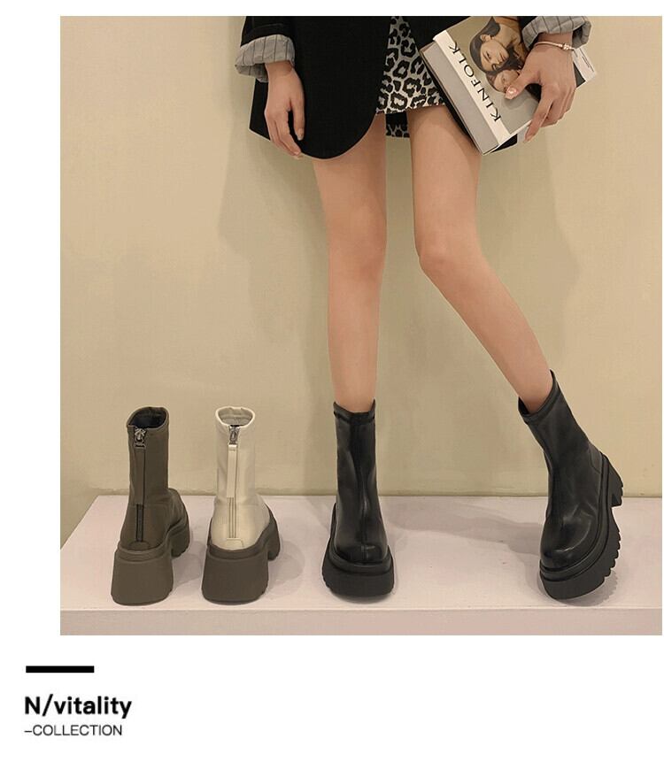 ショートブーツの女性 2023 春の新スタイルスリムソール厚底滑り止めファッショナブルで多用途な弾性スリムブーツの女性 靴 シューズ エラスティック 伸縮 スプリング 春物 jxjxf61788213807