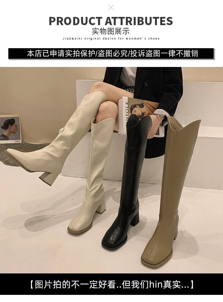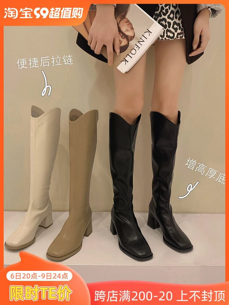 Jia Bujia ニーハイブーツの女性 2023 新しい夏のファッションレトロ痩身ブーツ小人ハイヒール 靴 シューズ サマー 夏物 jxjxf55220586030