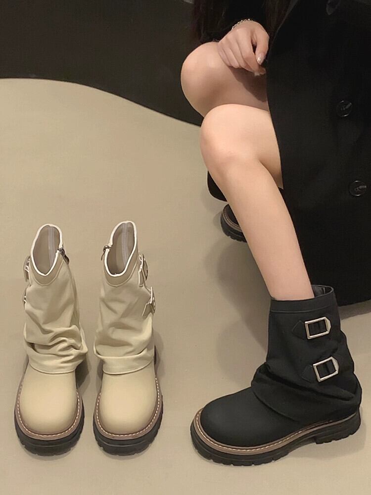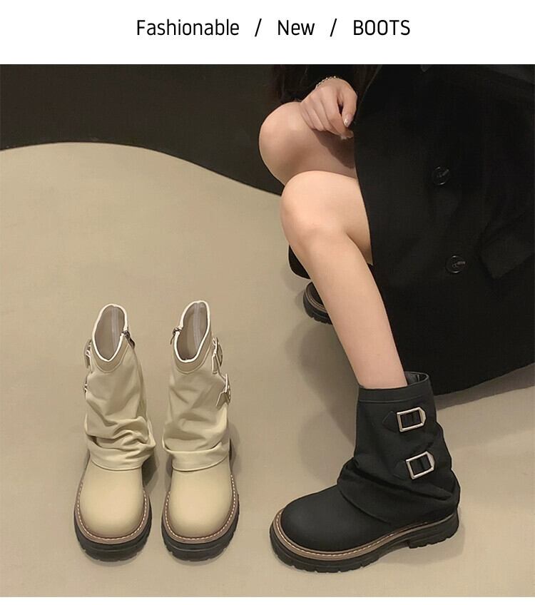 Jia Bujia インターネット有名人ショートブーツ女性 2023 夏の新スタイルのスーパーで多用途のレトロなスタイル厚いヒールアーケードオートバイブーツ 靴 シューズ サマー 夏物 jxjxf62633393656