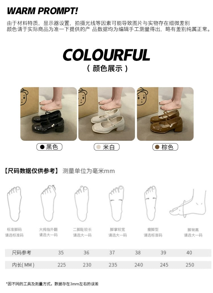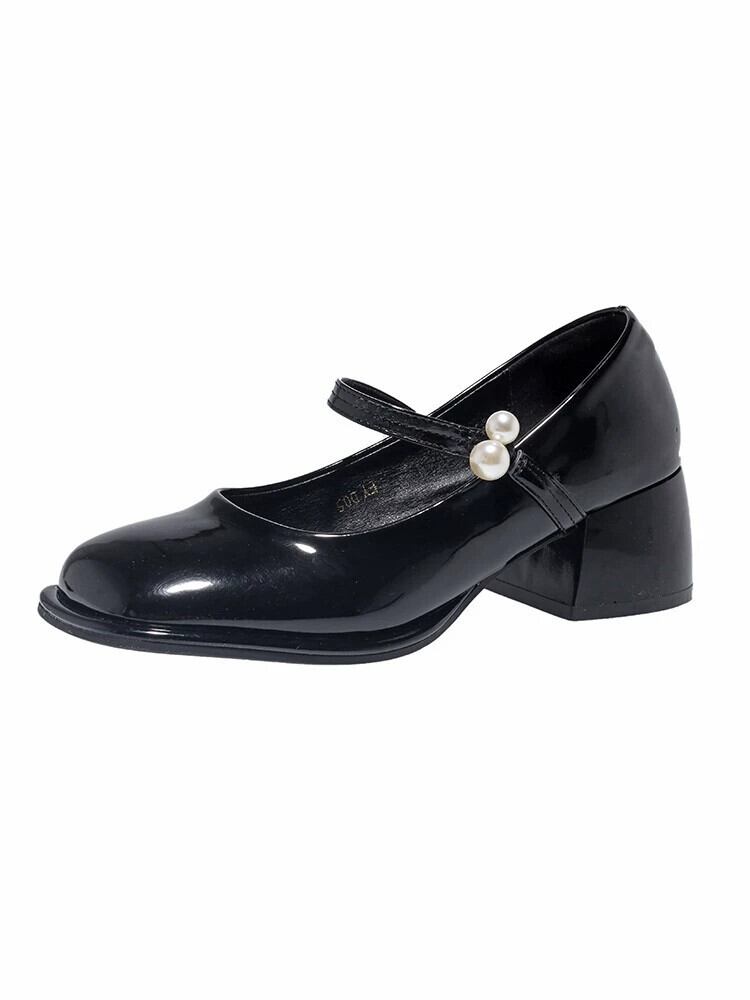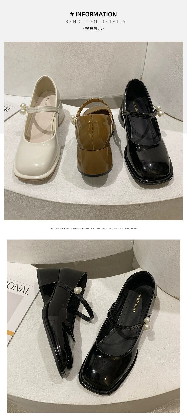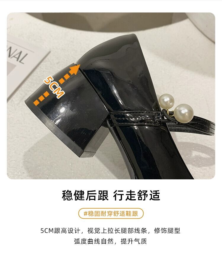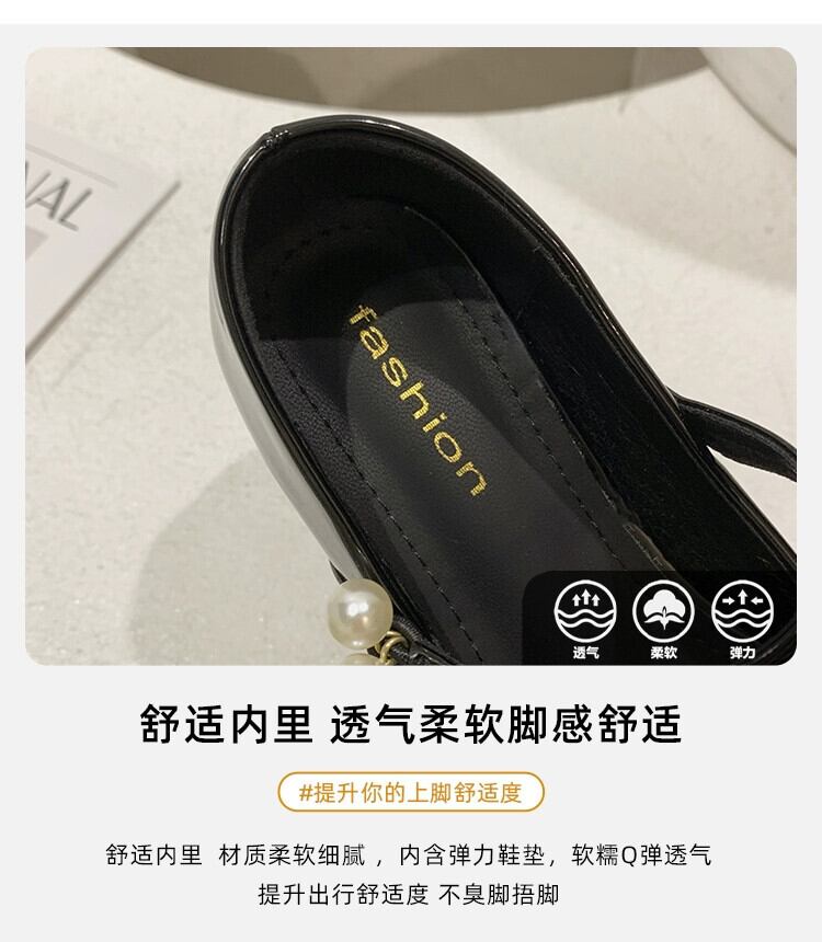 浅い口の小さな革の靴の女性 2023 春の新ファッション多用途パールスクエアトゥ厚いヒールノンスリップレトロメリージェーンシューズ スプリング 春物 レザー 真珠 スクウェア jxjxf20125782394