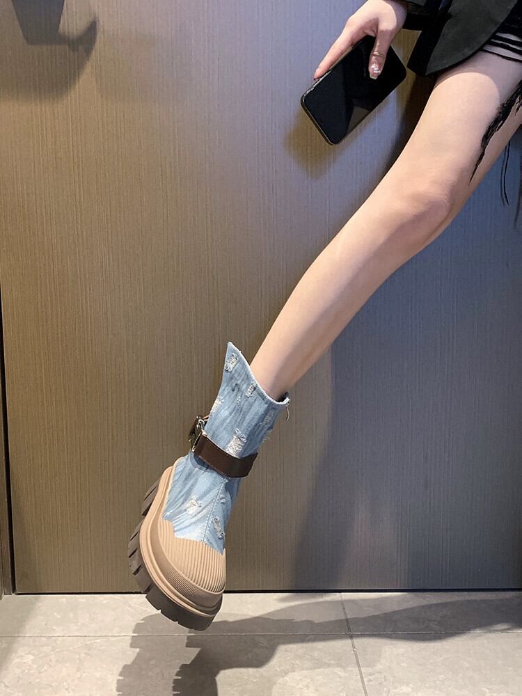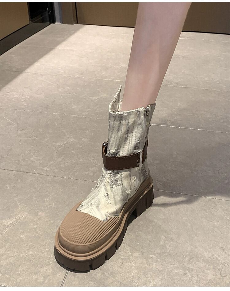 Jia Bufake ショートブーツ レディース 2023 夏多用途レトロストリート太いヒールウエスタンカウボーイブーツ 靴 シューズ サマー 夏物 jxjxf31499603209