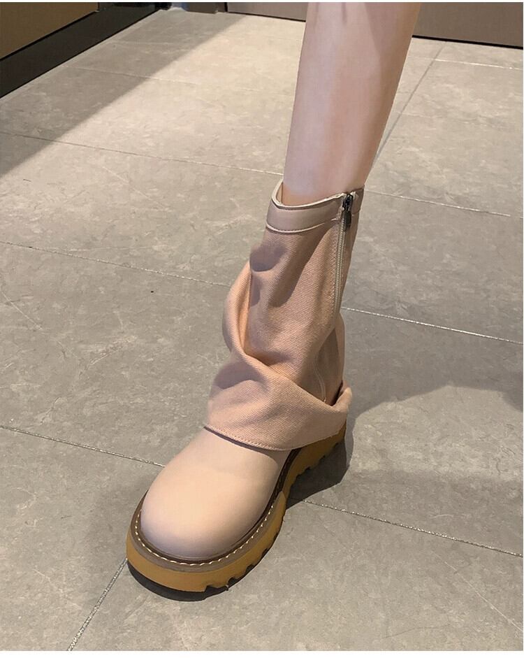 Jia Bufake ショートブーツ女性 2023 夏スタイル可能ハンサム多用途ストリートフレンドリーな厚底レトロスリムブーツトレンディ 靴 シューズ サマー 夏物 jxjxf43823756964