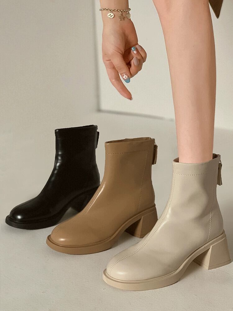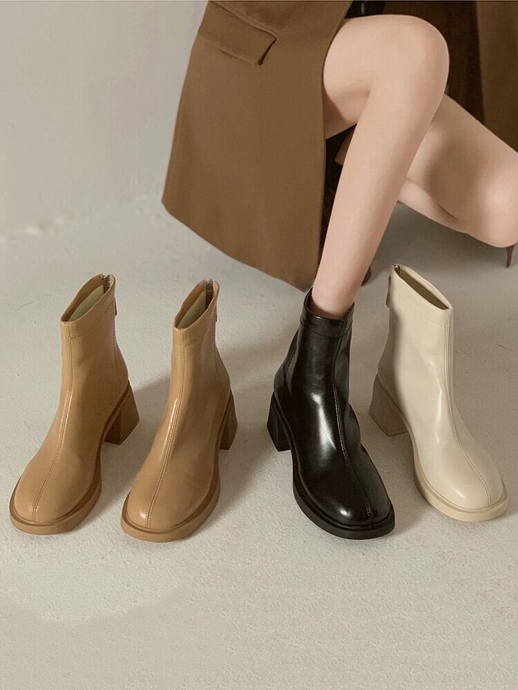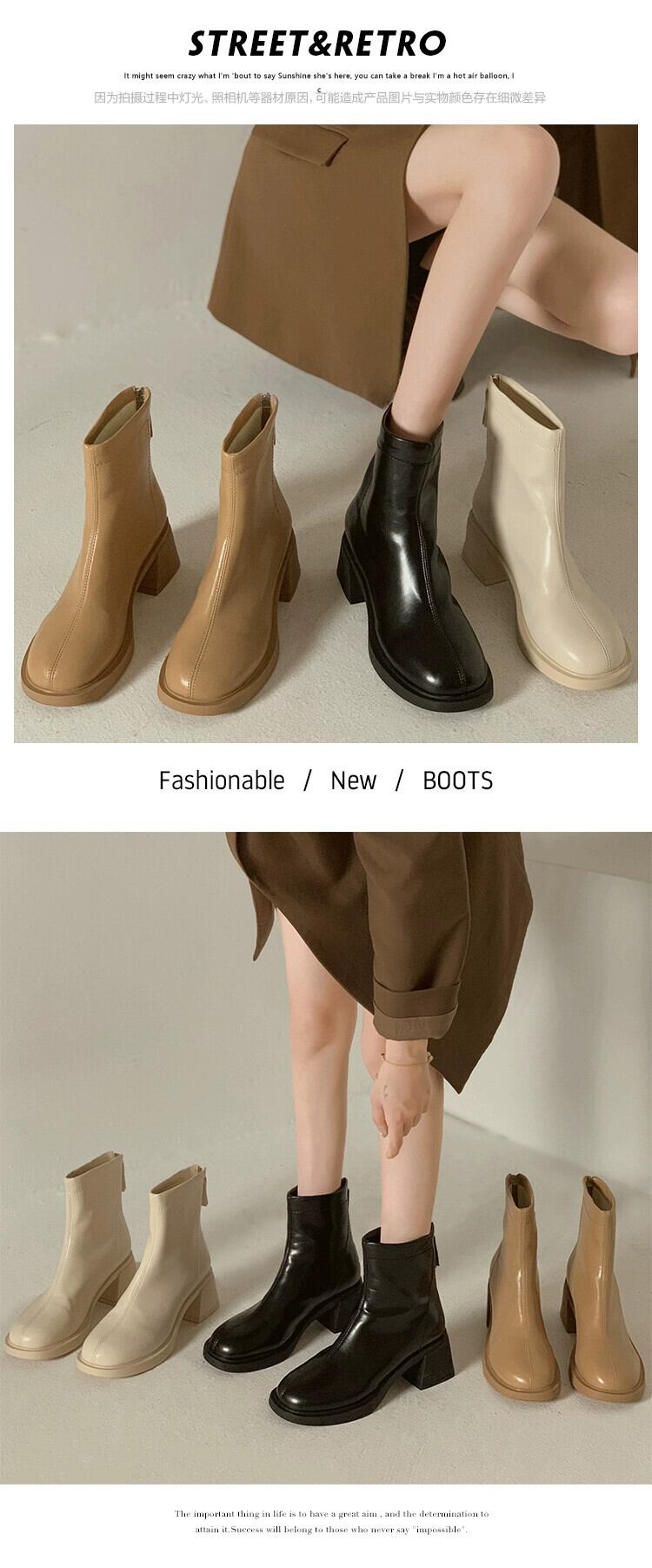 Jia Bufake ショートブーツ女性 2023 夏多用途フレンチレトロ太いヒール対応スリムブーツトレンド 靴 シューズ サマー 夏物 jxjxf3722725411