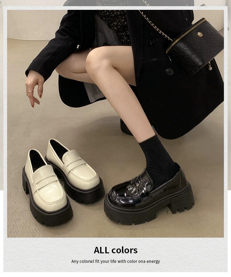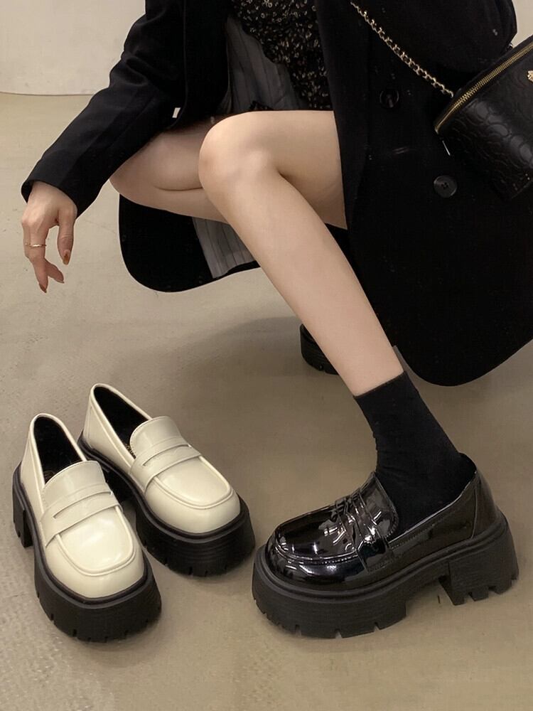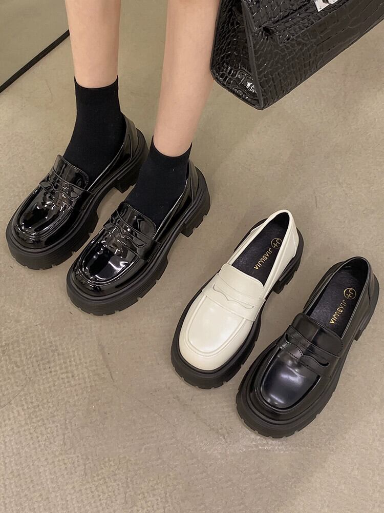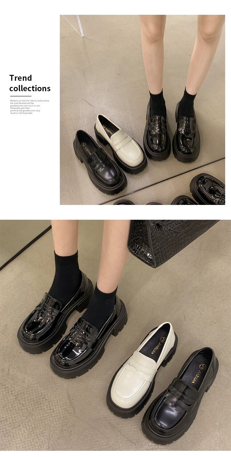 ese ローファー女性 2023 春の新スタイルファッショナブルで多用途な小さな厚いヒール滑り止め甘くてクールな小さな革靴春 シューズ 大人ガーリー スウィート キュート カジュアル スプリング 春物 レザー jxjxf40839232828