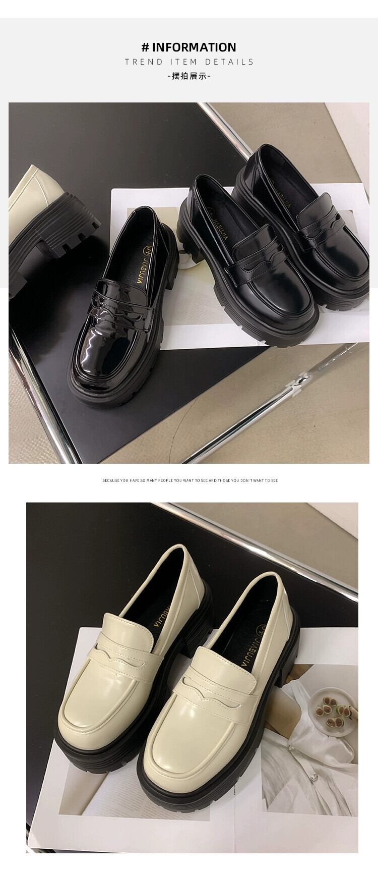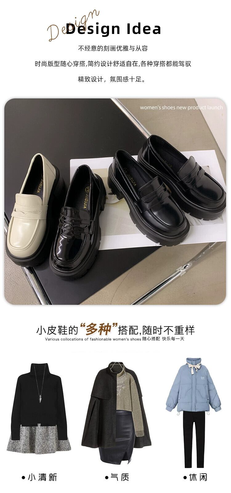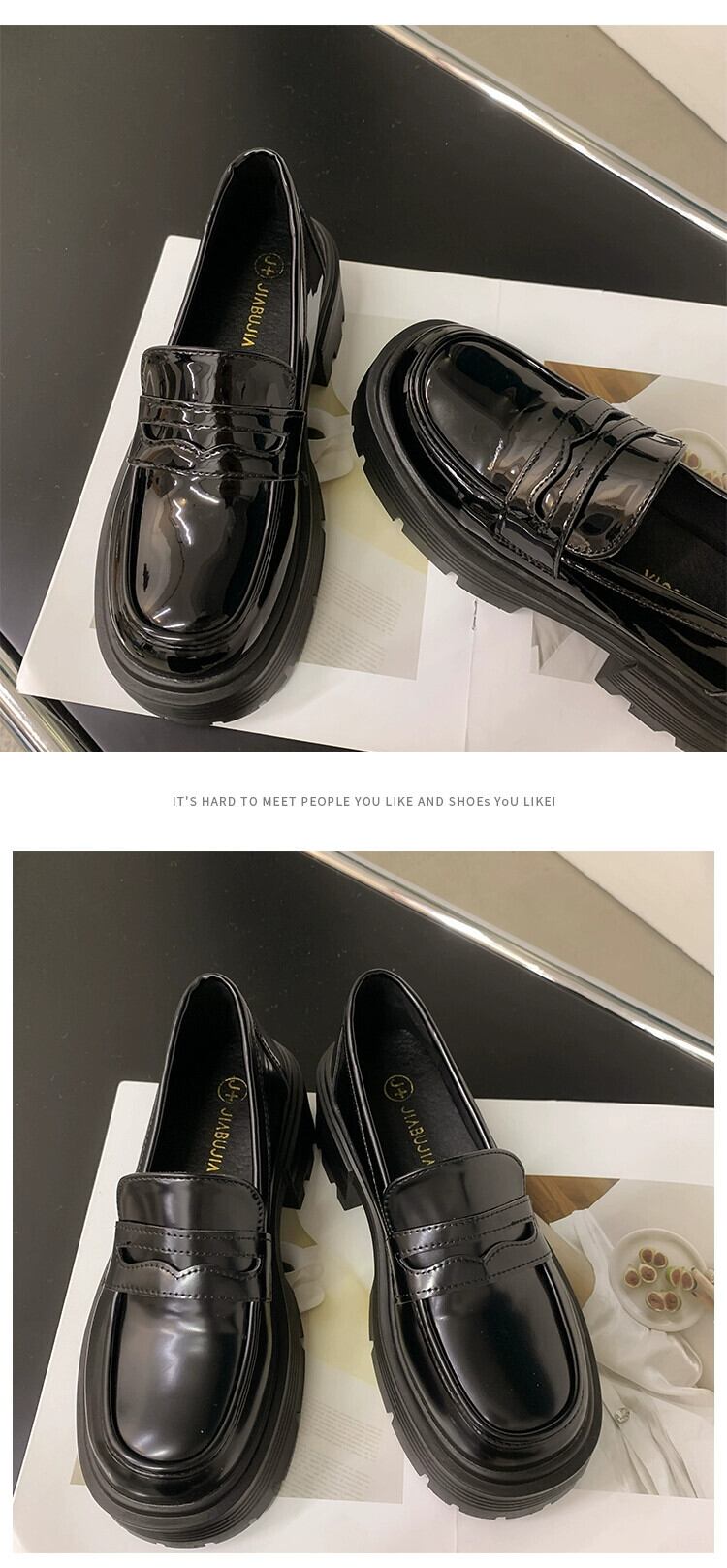 ese ローファー女性 2023 春の新スタイルファッショナブルで多用途な小さな厚いヒール滑り止め甘くてクールな小さな革靴春 シューズ 大人ガーリー スウィート キュート カジュアル スプリング 春物 レザー jxjxf40839232828