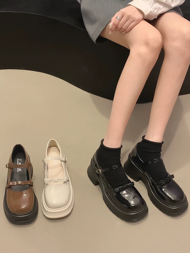 Jia Bufake メリージェーンの靴の女性 2023 夏新レトロ多用途小型厚いヒールファッショナブルな小さな革靴 シューズ サマー 夏物 レザー jxjxf58817382969