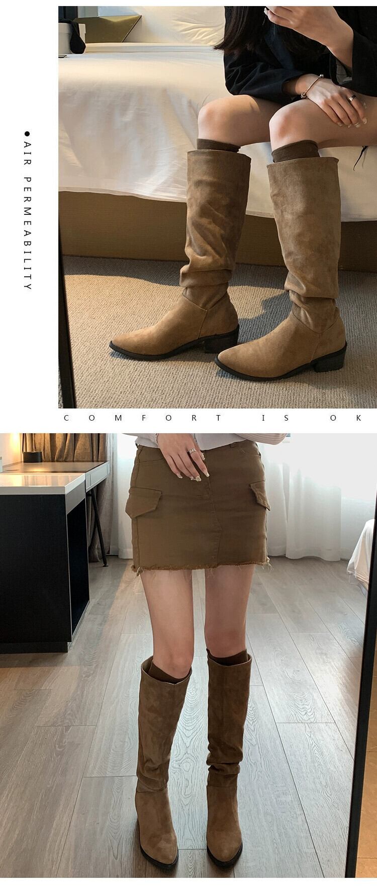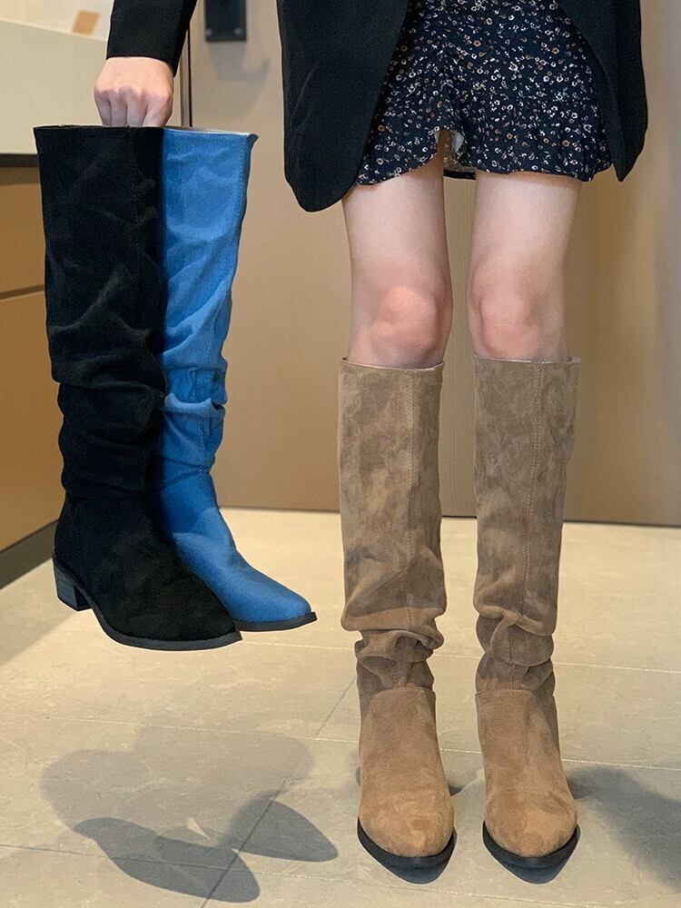 Jia Bujia インターネット有名人のブーツの女性 2023 新しい夏のファッションレトロ多用途ポインテッドトゥ eign スタイル太いヒールスリムブーツ 靴 シューズ サマー 夏物 jxjxf47816639672